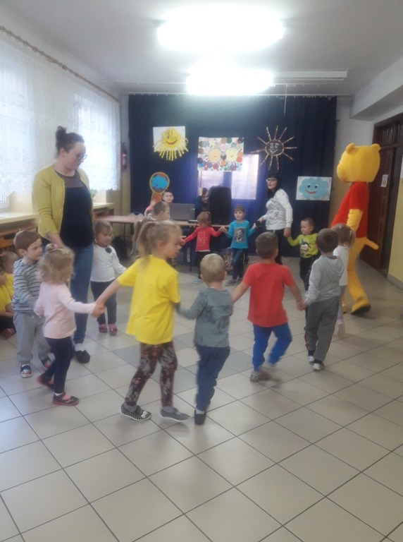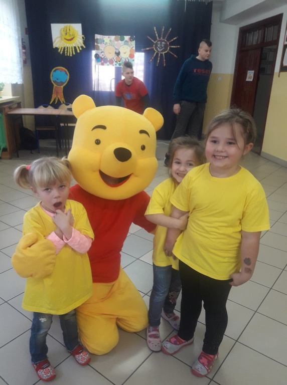 Tego dnia odwiedził przedszkolaków roztańczony Kubuś Puchatek, który wprowadził swoją obecnością i umiejętnościami tanecznymi bardzo radosny nastrój wśród uczestników tego spotkania. W ramach Tygodnia Uśmiechu i Życzliwości zorganizowane zostały dla klas I- III zawody sportowe, które poprowadziła P. Małgorzata Dyktyńska. Pomimo elementów rywalizacji i chęci współzawodnictwa, każdy uczestnik konkurencji sportowych stosował zasady fair play, czyli czystą, uczciwą grę, prowadzoną nie tylko w sposób zgodny z ustalonymi zasadami, ale również z właściwą postawą moralną- szacunkiem dla drugiego zawodnika. Dla klas IV- VIII zostało wyznaczone zadanie literackie, polegające na kontynuowaniu myśli dotyczącej słowa „przyjaciel” i „przyjaźń”, którego rozstrzygnięcie będzie już wkrótce. Bardzo dziękujemy przedszkolakom, uczniom, nauczycielom za zaangażowanie i chęć uczestnictwa w tym radosnym przedsięwzięciu i liczymy, iż w kolejnych latach również będziemy kontynuować te działania, aby budować radosną atmosferę opartą na życzliwości i wzajemnym szacunku.