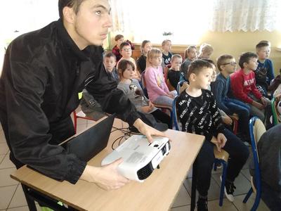 19 listopada w naszej szkole gościli strażacy ochotnicy z jednostki OSP w Wielgomłynach. Druhowie przeprowadzili zajęcia dla dzieci z klas I - III, których celem było zapoznanie uczniów ze skutkami jakie niesie ze sobą pojawienie się w domu czadu, bardzo niebezpiecznego szczególnie w okresie, kiedy ogrzewamy domy, a także kiedy w niewłaściwy sposób działa wentylacja oraz urządzenia grzewcze. Zaprezentowali automatyczne czujki dymu i tlenku węgla, które alarmują o wystąpieniu zagrożenia, pozwalają na szybką reakcję i uratowanie życia.