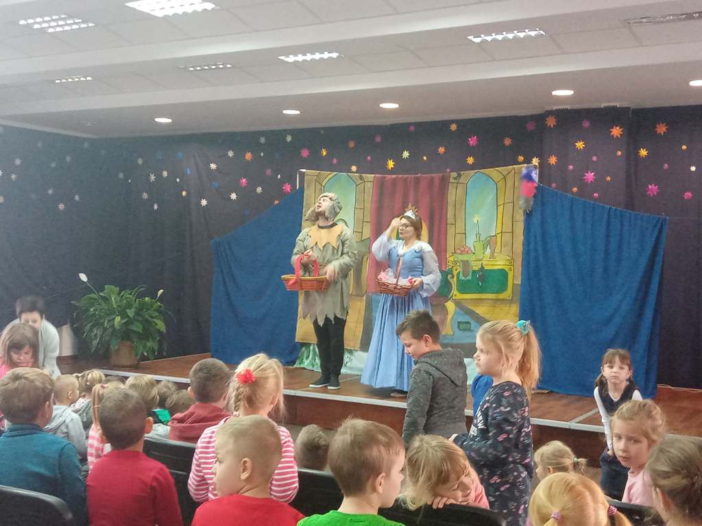 3 grudnia dzieci z oddziałów przedszkolnych oraz klas I-III udały się do Gminnego Ośrodka Kultury i Sportu w Wielgomłynach na przedstawienie pt. „Świąteczna gorączka Olafka”. Maluchy z ogromnym zainteresowaniem obejrzały przedstawienie. Po minach widać było, że bardzo im się podobało.