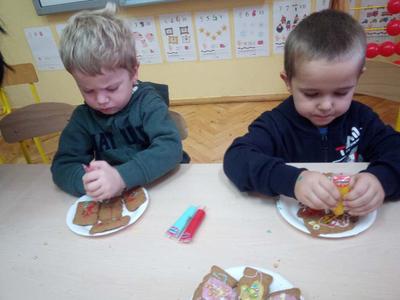4 grudnia dla dzieci z oddziału przedszkolnego 3-4 latków był bardzo pracowity, bowiem tego dnia maluchy dekorowały pierniczki.