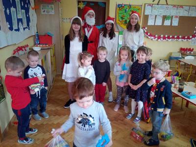 Mikołajki w Naszej Szkole to bardzo ważne wydarzenie dla wszystkich dzieci. Jest to już dla nas tradycja, którą kontynuujemy z roku na rok. Wizyta Świętego Mikołaja to dobry znak, świadczący o tym, że dzieci były grzeczne. Dostojny gość odwiedził wraz ze Śnieżynkami każdą klasę. Niecierpliwe oczekiwanie na przybycie wspaniałego gościa zostało nagrodzone, wszystkie dzieci otrzymały słodkie prezenty. Maluchy wspólnie ze Świętym Mikołajem i Śnieżynkami recytowały wiersze, śpiewały piosenki i tańczyły.