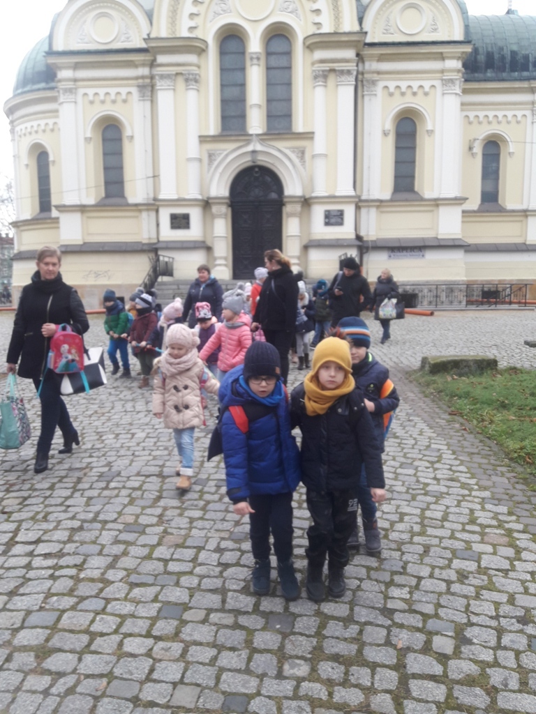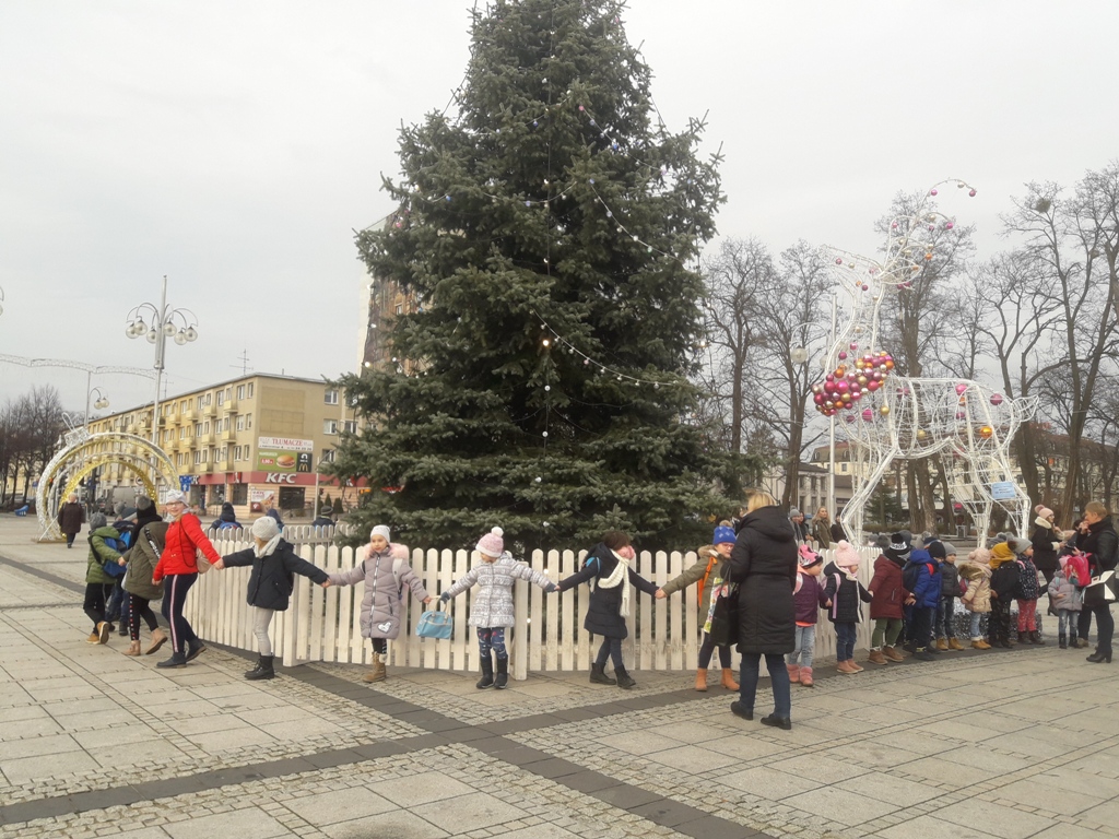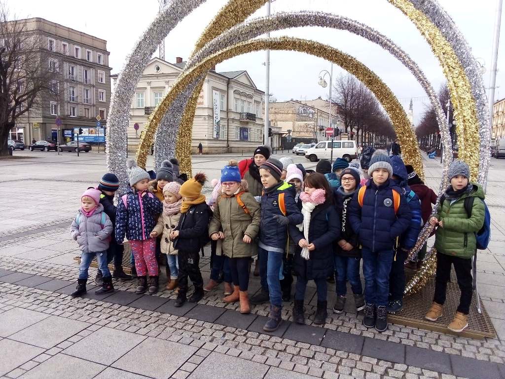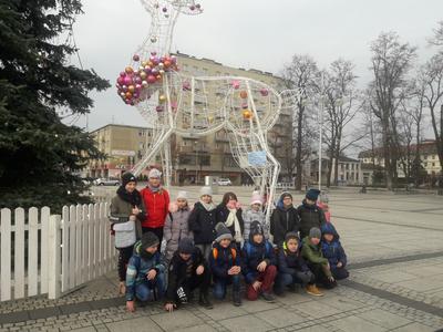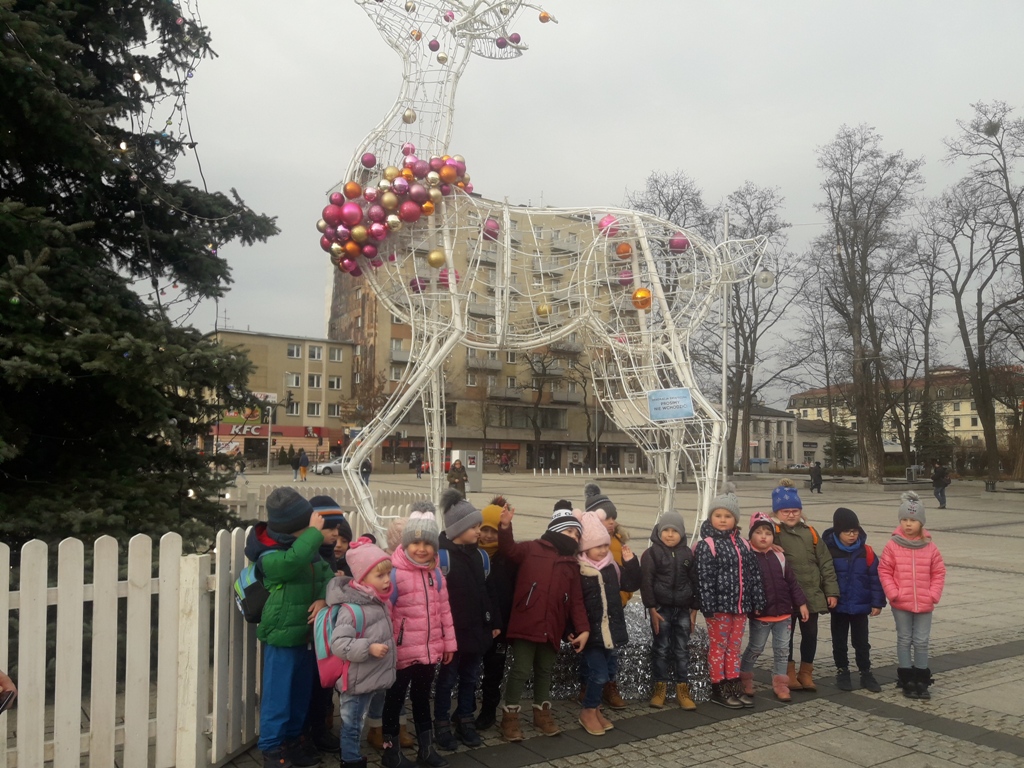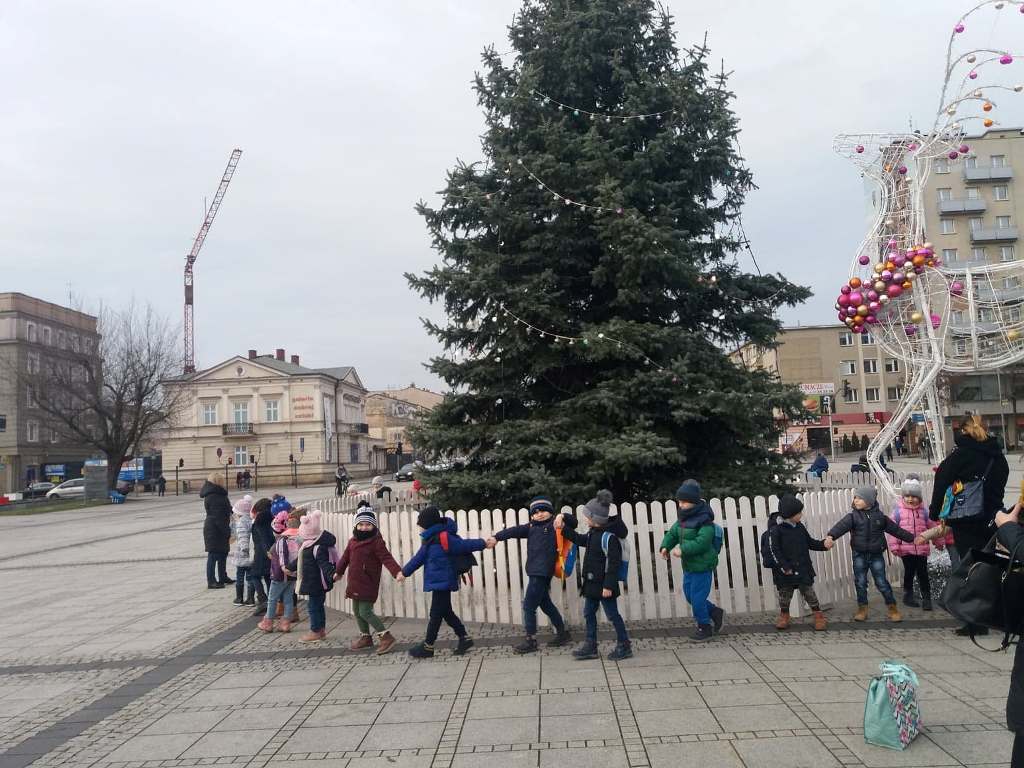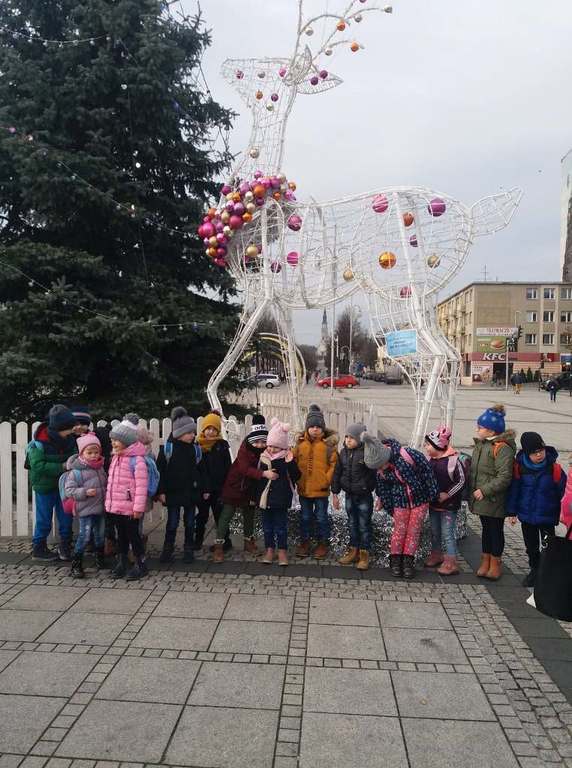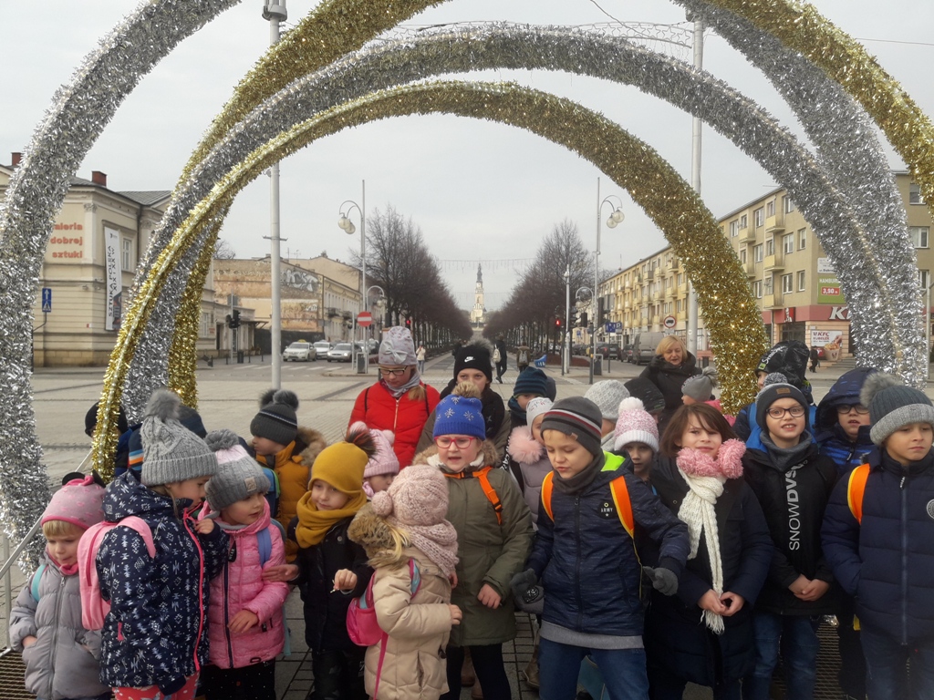Tego dnia dzieci spacerowały jeszcze ulicami Częstochowy, aby obejrzeć świąteczne iluminacje na placu Biegańskiego. Wykonaliśmy pamiątkowe zdjęcie przy ogromnej choince, która wprowadziła nas w nastrój Świąt Bożego Narodzenia. Podczas wyjazdu panowała miła i bardzo świąteczna atmosfera a nasz rozśpiewany autobus bezpiecznie dotarł na miejsce.