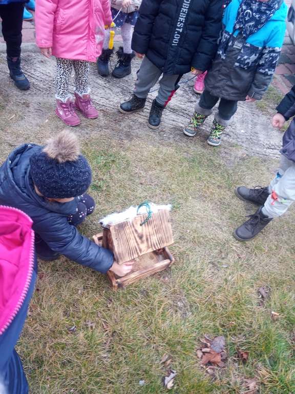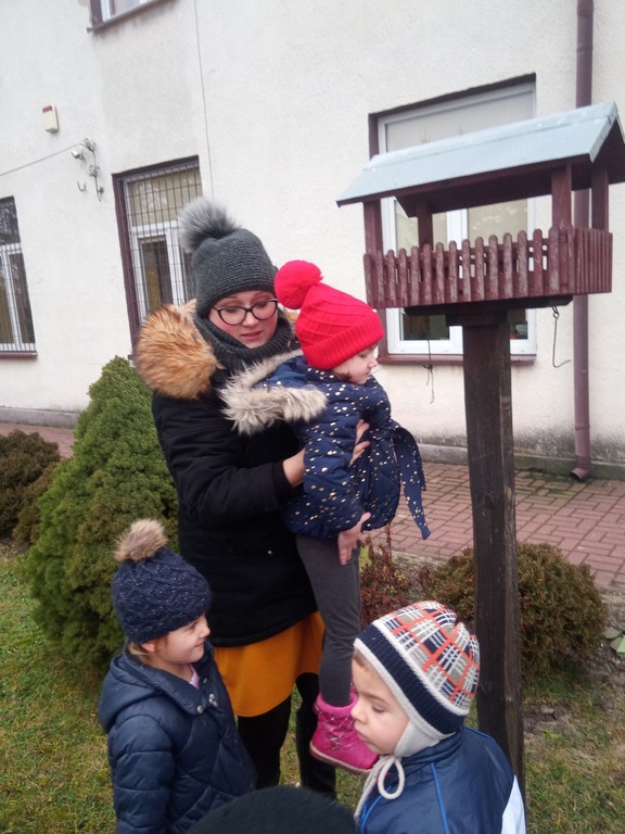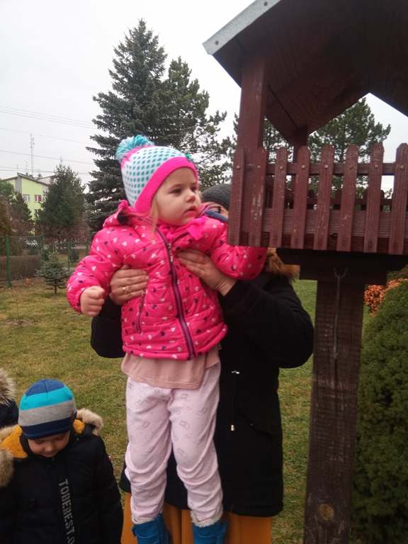 Dlatego przedszkolaki postanowiły, że pomogą ptakom. Maluszki wiedzą, że zima to dla nich trudny czas. Ptaki mają problem ze znalezieniem pożywienia. Dzieci przyniosły do przedszkola ziarenka, którymi będziemy dokarmiać naszych skrzydlatych przyjaciół. Przedszkolaki postanowiły, że każdego dnia podczas spaceru będą dokładać do karmnika pożywienie. Dokarmianie ptaków jest jedną z najbardziej rozpowszechnionych form ich ochrony. Dla dzieci była to ogromna radość i duma z niesienia pomocy.