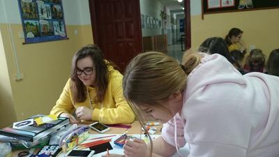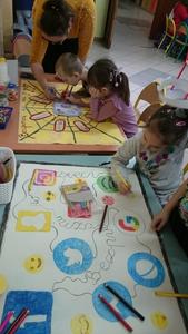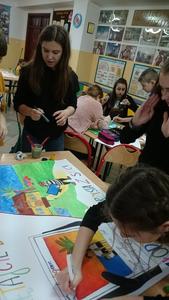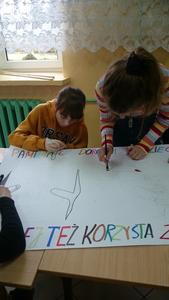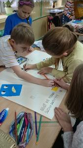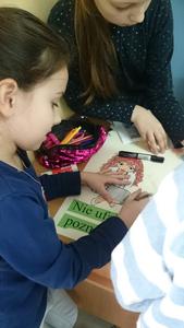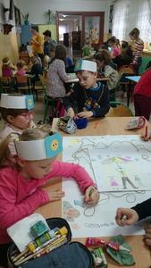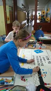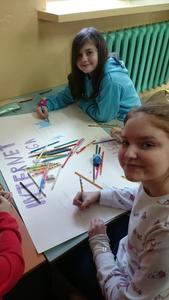 W warsztatach uczestniczyli wszyscy uczniowie. Najmłodsi z oddziałów przedszkolnych wykonywali opaski na głowę z emotikonami oraz plakaty.