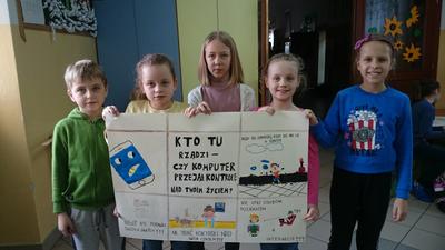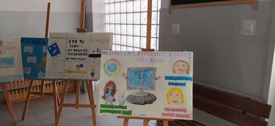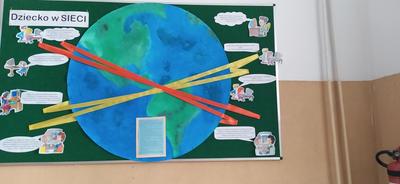 Uczniowie wykonali tablicę informacyjną na korytarzu szkolnym, pt. „Dziecko w Sieci”.