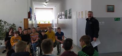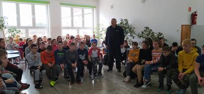Następnie odbyło się spotkanie z policjantem – dzielnicowym Andrzejem Bieniasem, który przeprowadzi z uczniami klas V – VIIII rozmowę na temat przestępczości i hejtowi w Internecie odpowiedzialności karnej z nią związanej i możliwości dochodzenia swoich praw.