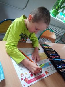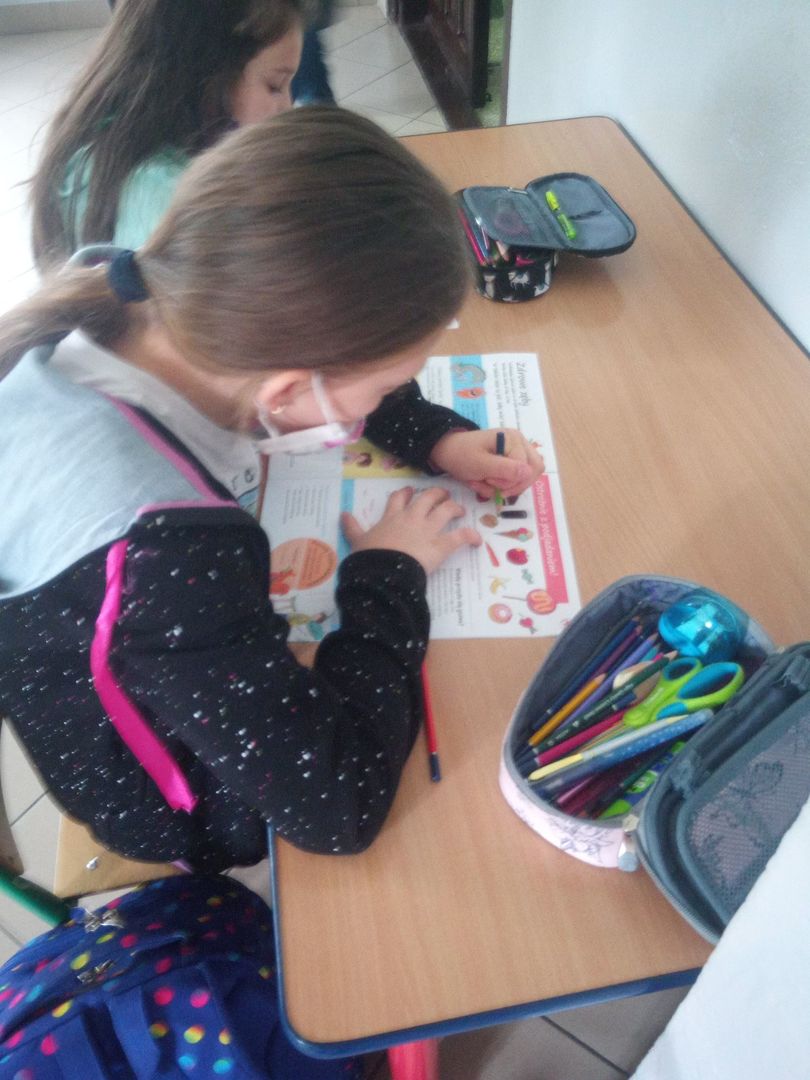 Pierwsze zajęcia, które odbyły się w świetlicy dotyczyły przekąsek, które są zdrowe dla zębów a które mają szkodliwy wpływ.