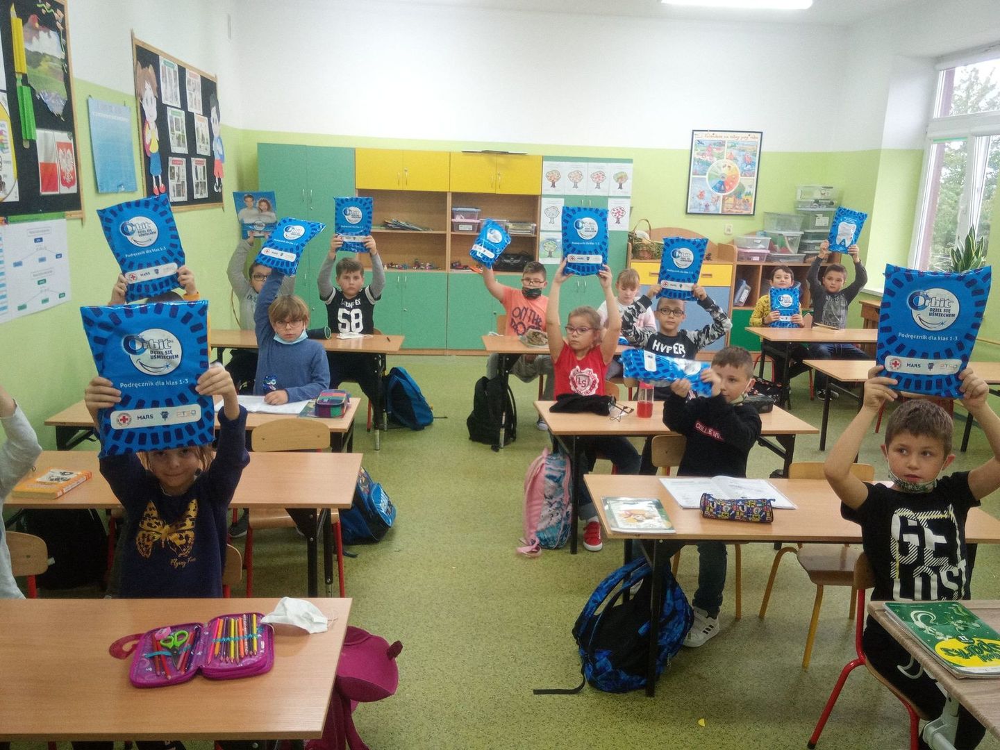 Dzieci biorące udział w projekcie otrzymały pakiety startowe, w których znajdowały się: szczoteczka do zębów, pasta do zębów, gumy do żucia bezcukrowe oraz książeczka z zadaniami i materiałami dydaktycznymi.