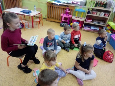 Dzieci poznały przygody Koziołka Matołka, które spotkały go w poszukiwaniu Pacanowa. Pobudziły swoją wyobraźnię i nauczyły się koncentracji. Wypowiadały się na temat treści książki. Swoje wrażenia oddawały w twórczości plastycznej, malując ilustracje.