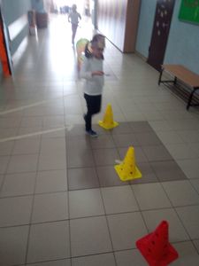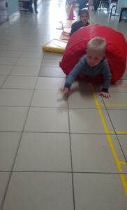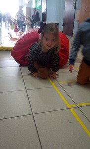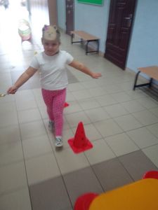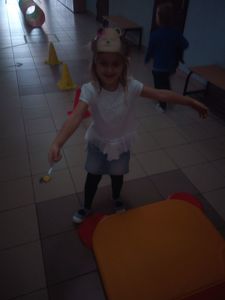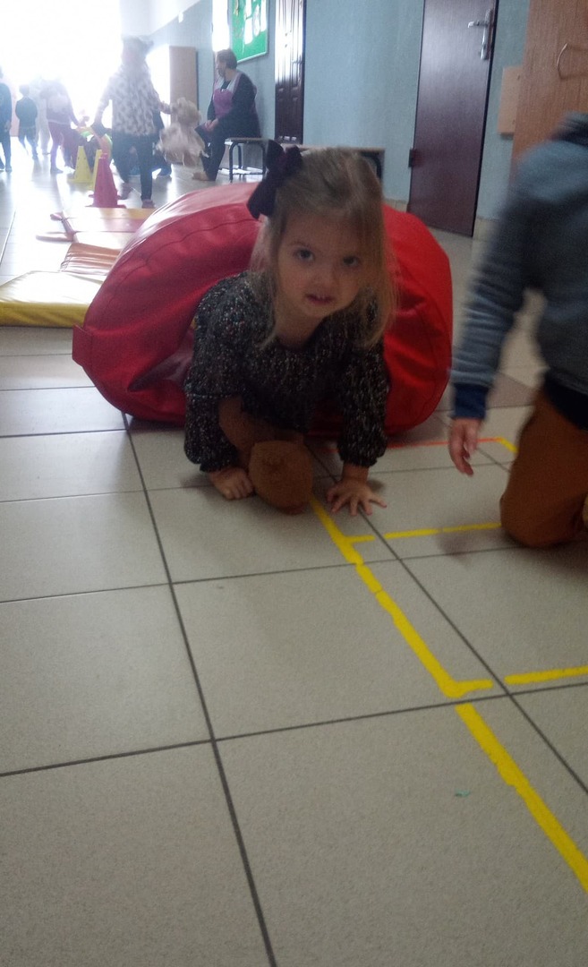 „Wędrówka po miodek” - tor przeszkód z elementami gimnastyki korekcyjnej był kolejnym elementem misiowego dnia. Maluchy musiały wykonać zadania, za zaliczenie tych konkurencji każda grupa otrzymała słoik miodu.