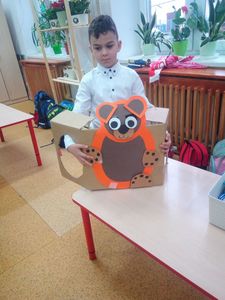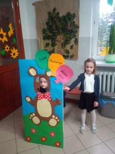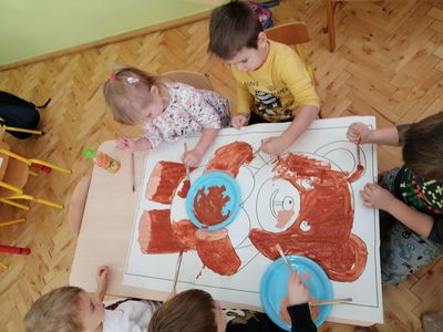 Dzieci dowiedziały się w jaki sposób powstał pierwszy pluszowy miś oraz zgadywały zagadki związane z misiową tematyką. Swoich sił próbowały również podczas zabawy „Dopasuj do misia”. Zadanie polegało na przyklejaniu misiowi części ciała, nie widząc nic.