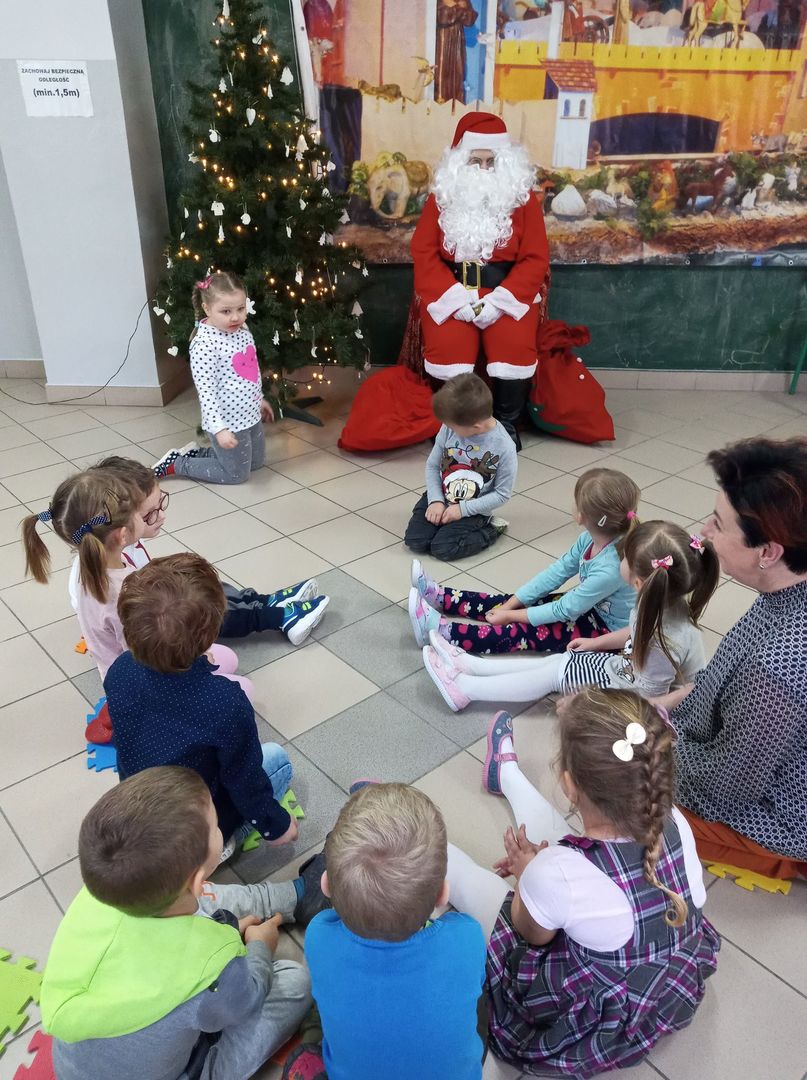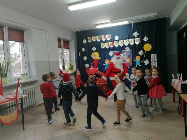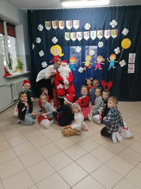 Jak co roku 6 grudnia naszą szkołę znów odwiedził Święty Mikołaj. Dzieci tego dnia ubrały się odświętnie. Wspólnie z wychowawcami przygotowały dla wspaniałego gościa moc niespodzianek. Przedszkolaki zaprezentowały wiersze oraz piosenki świąteczne. Miłym akcentem spotkania były prezenty dla każdego dziecka oraz zdjęcie ze Świętym Mikołajem.