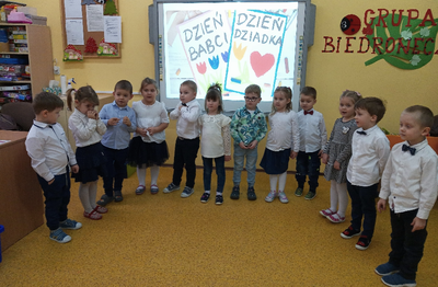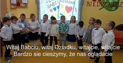 Pomimo, iż nie mogliśmy spotkać się z babciami i dziadkami osobiście w przedszkolu i zaprosić ich na występ z okazji ich święta, to jednak na tą okoliczność postanowiliśmy przygotować program artystyczny w formie filmu i przekazać go do obejrzenia we własnych domach. Dzieci przygotowały prezenty, nauczyły się piosenek oraz wierszy. Efekty starań wnuczków będą doskonałą pamiątką dla babci i dziadka, do której będą mogli sięgać w każdej wolnej chwili.