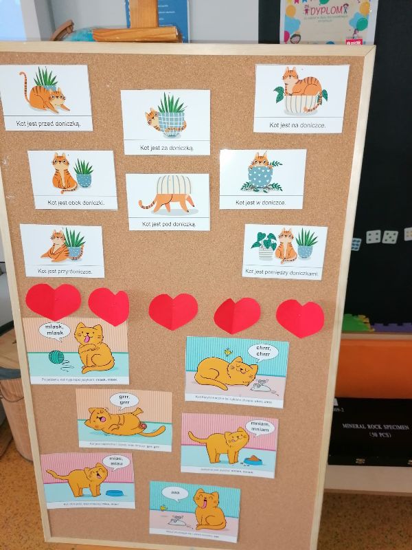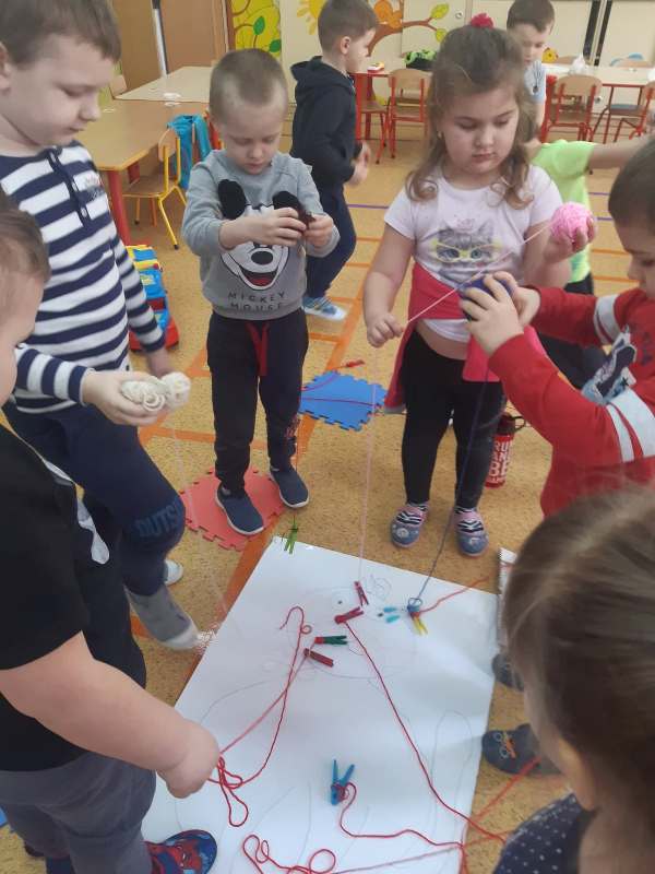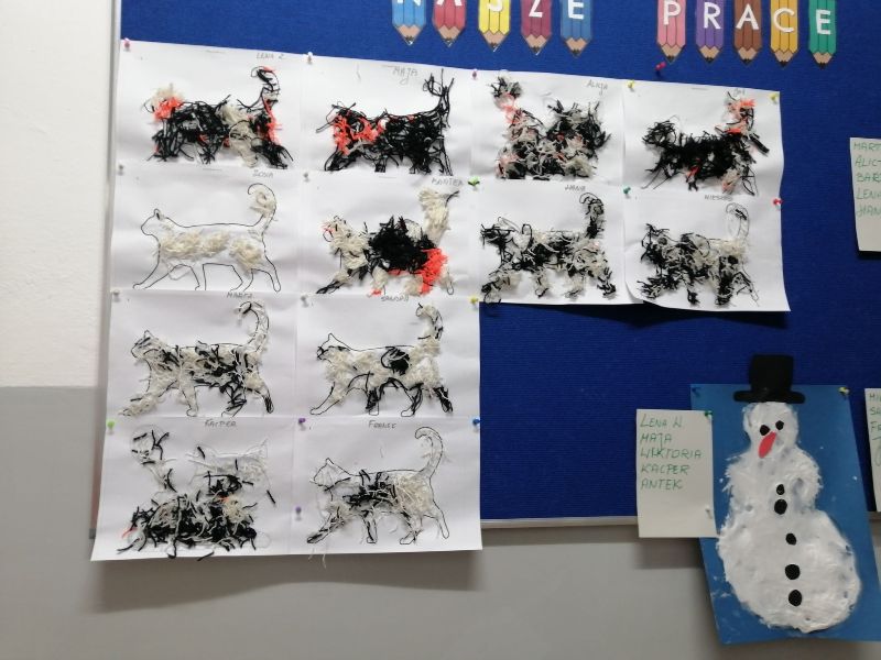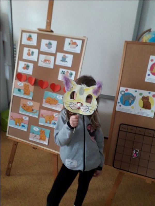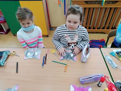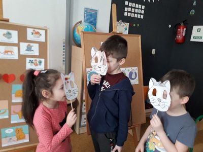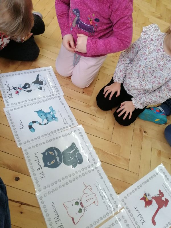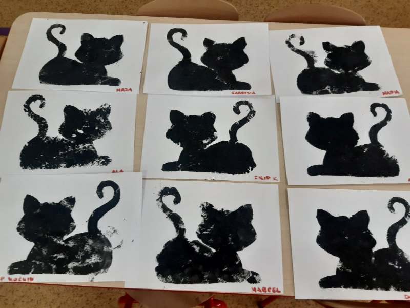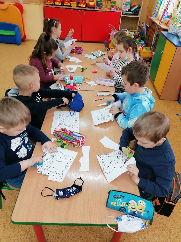 W dniu 17 lutego 2021 r. przedszkolaki ze wszystkich oddziałów świętowały Międzynarodowy Dzień Kota. Z tej okazji dzieciom od rana towarzyszyły piosenki, wiersze i opowieści o kotach. Przedszkolaki oglądały ilustracje przedstawiające milusińskie zwierzątka i dowiedziały się wiele ciekawostek dotyczących ich życia. Najmłodsi ćwiczyli aparat artykulacyjny, naśladując kocie odgłosy, rozwiązywali zagadki związane z kotami, a także rozpoznawali na obrazkach znane koty z bajek. Dzieci uczestniczyły w "kocich zabawach": zwijanie kłębka wełny i przyciąganie myszki do kotka. Przedszkolaki wykonywały także prace plastyczne: trzylatki wyklejały wełną sylwety kotów, czterolatki stworzyły sensorycznego kota z użyciem różnorodnych materiałów, pięciolatki i sześciolatki wycinały i kolorowały kocie maski. Sześciolatki przedstawiały scenki na podstawie baśni „Kot w butach”.