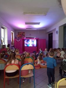 25 maja dzieci z oddziałów przedszkolnych oraz klas I-III miały okazję obcować z teatrem, sztuką, magią oglądając niezwykły spektakl przygotowany przez Katolicki Teatr Edukacji z Krakowa pt. „Alicja online”.