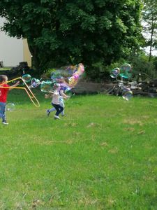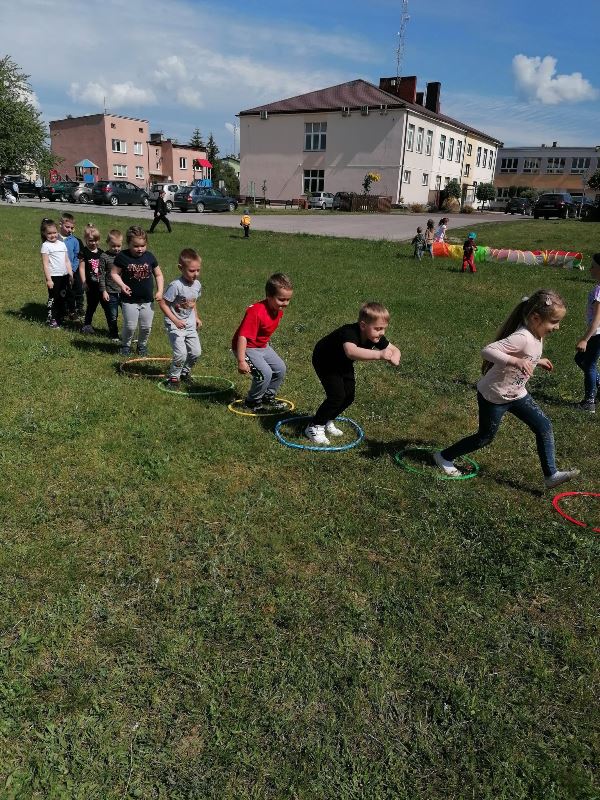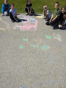 Na chodniku szkolnym powstały piękne obrazki malowane kredą. Przedszkolaki spędziły czas na grillowaniu, zabawie z bańkami mydlanymi, wycieczce na lody oraz seansie filmowym. Również klasy IV-VIII nie próżnowały tego dnia, na hali zorganizowały rozgrywki sportowe.