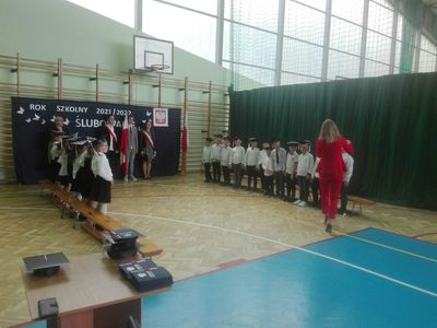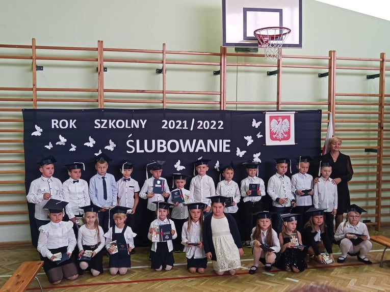 Rozpoczęcie roku szkolnego 2021/2022 miało niezwykły charakter dla pierwszoklasistów z naszej szkoły nie tylko ze względu na pierwszy dzień nauki. W pięknych strojach galowych i pełni zapału do nauki najmłodsi uczniowie złożyli uroczyste ślubowanie.