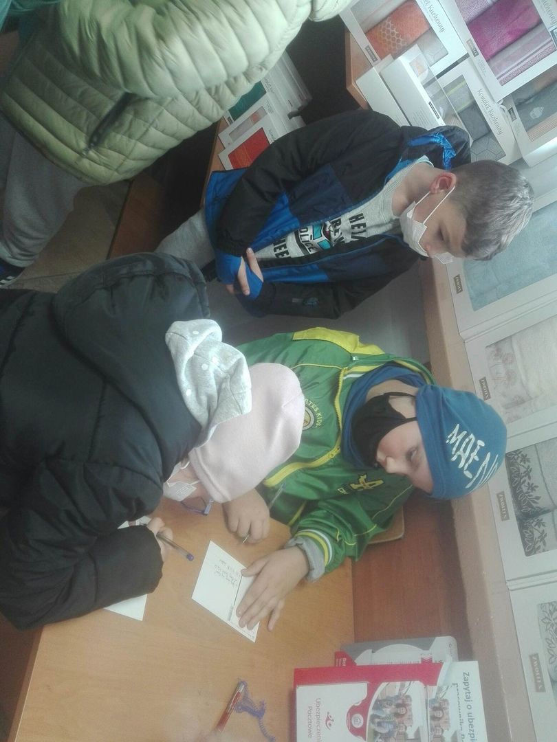 Dzisiejsze wyjście było dobrą okazją do wysłania kartek pocztowych w ramach akcji zorganizowanej przez fundację z Lublina „Gdy liczy się czas” -„Wylosuj Anioła dla Dziecka z onkologii”. Kartki zostały samodzielnie wykonane przez dzieci podczas zajęć świetlicowych.