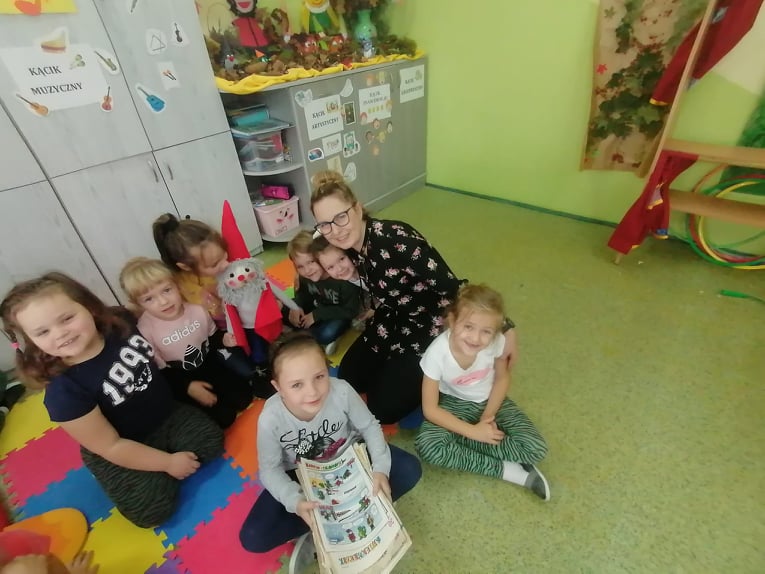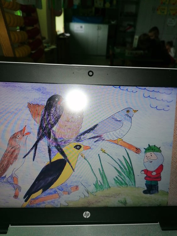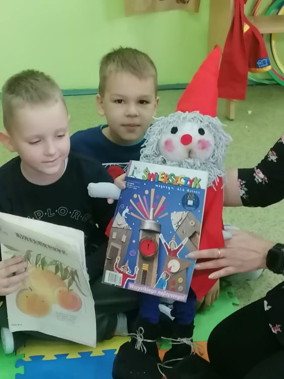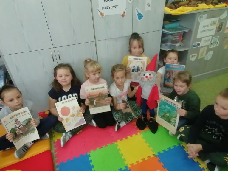 Przedszkolaki miały okazję w ramach projektu przeżyć kolejną przygodę z krasnalem Hałabałą. „Bo zwyczaj taki ptaki mają, że do ciepłych krajów na zimę wyruszają” - dzieci wysłuchały opowiadania na temat zwyczajów ptaków i dowiedziały się, które z nich wylatują na zimę do ciepłych krajów. Zapoznały się również z historią „Świerszczyka” – najstarszego czasopisma dla dzieci w Europie. Przeglądały różne numery zarówno te sprzed kilkudziesięciu lat, jak i najnowsze. Przeczytały także z paniami fragment książki, z którego dowiedziały się, dlaczego ptaki nie przyszły na ucztę. Obejrzały prezentację multimedialną na ten temat oraz wykonały pracę plastyczną. Inicjatorkami projektu są panie: Monika Niemczyk, Monika Bębniarz.