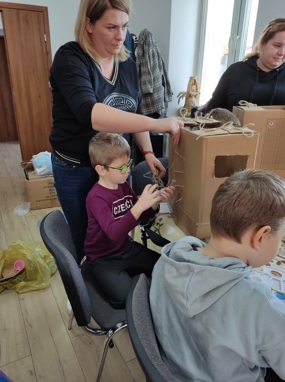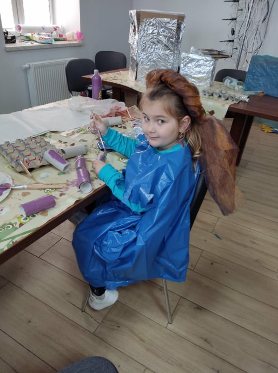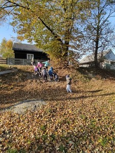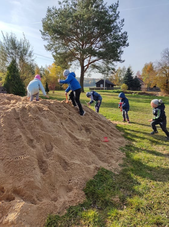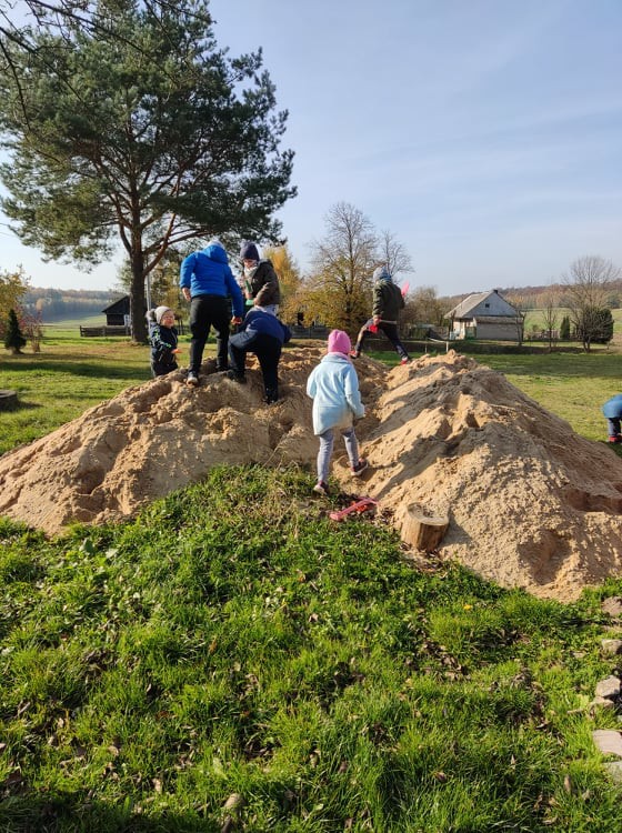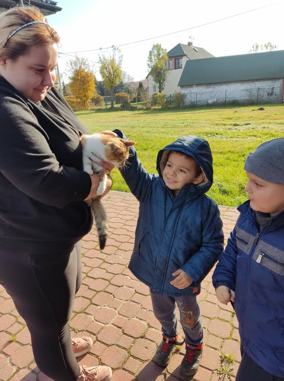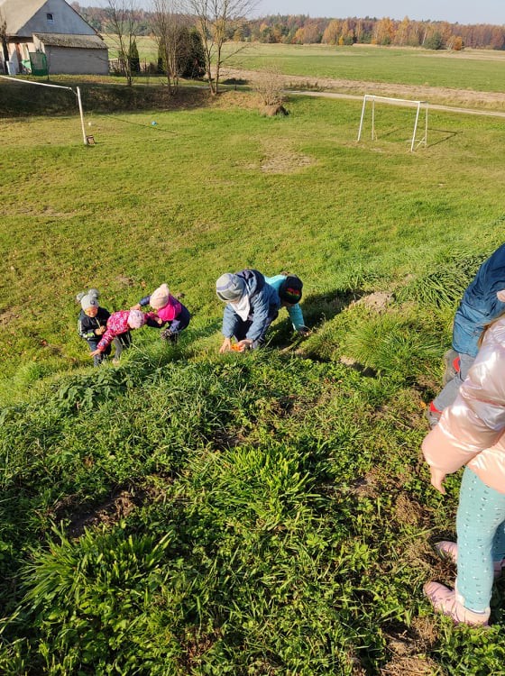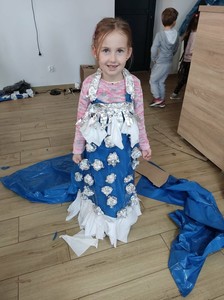 Grupa 5-latków wybrała się wraz z opiekunami na wycieczkę autobusową do świetlicy w Rogach, aby spędzić tam dzień na kreatywnych i twórczych zabawach w ramach realizowanego projektu ekologicznego „Gramy w zielone”. Tradycyjne zabawki zastąpiły pudła tekturowe, worki foliowe, szary papier, rolki, butelki plastikowe, kasztany, szyszki, orzechy i inne materiały. Przy współudziale i zaangażowaniu chętnych rodziców, ze zgromadzonych materiałów powstała kolekcja mody ekologicznej. Wszyscy mieli wspaniałą zabawę przy projektowani stroju oraz realizacji pomysłu. Podczas wycieczki nie mogło zabraknąć okazji do spaceru i obserwacji przyrody. Słoneczna pogoda umożliwiła zabawy w piasku, w liściach, wspinaczki po górkach, pagórkach, który były niesamowitą frajdą dla przedszkolaków. Dzień ten był dowodem na to, że można miło spędzić czas i aktywnie bez konieczności posiadania kosztownych zabawek. Może to jest jakaś alternatywa i sposób na obecne czasy... Miejmy nadzieję, że taka forma spędzania czasu przypadnie dzieciom do gusty i zwykły patyk stanie się niezwykłą zabawką. Bardzo dziękujemy P. Marzenie Orlik za pomoc w zorganizowaniu wycieczki, za zaangażowanie, włożoną pracę w przygotowaniu miejsca do zajęć z dziećmi, za szereg czynności, które wykonała, aby ten dzień był miłą pamiątką dla nich. Podziękowania dla pozostałych mam, które nam towarzyszyły i pomagały w zgromadzeniu materiału do zajęć.