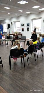 9 listopada 2021 roku uczniowie klasy 1 otrzymały zaproszenie do GOKiS w Wielgomłynach na spotkanie po hasłem ”Dzień postaci z bajek”. Panie z Gminnego Ośrodka Kultury i Gminnej Biblioteki Publicznej powitały grupę pierwszoklasistów bardzo serdecznie. Dzieci wysłuchały fragmentów różnych baśni, a następnie wykonywały różne zdania związane z postaciami z bajek i baśni. Jednym z zadań było wykonanie wiewiórki przy użyciu różnych technik plastycznych. Uczniowie mieli też okazję poruszać się w tańcu oraz podczas zabaw ruchowych przy muzyce. Na zakończenie pierwszaki otrzymały lizaki i wróciły do szkoły w doskonałych nastrojach. Długo będą wspominali czas spędzony w GOKiS. .