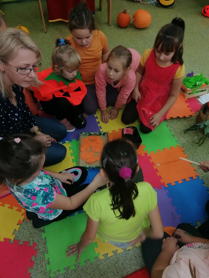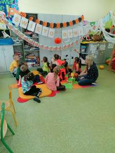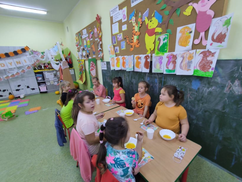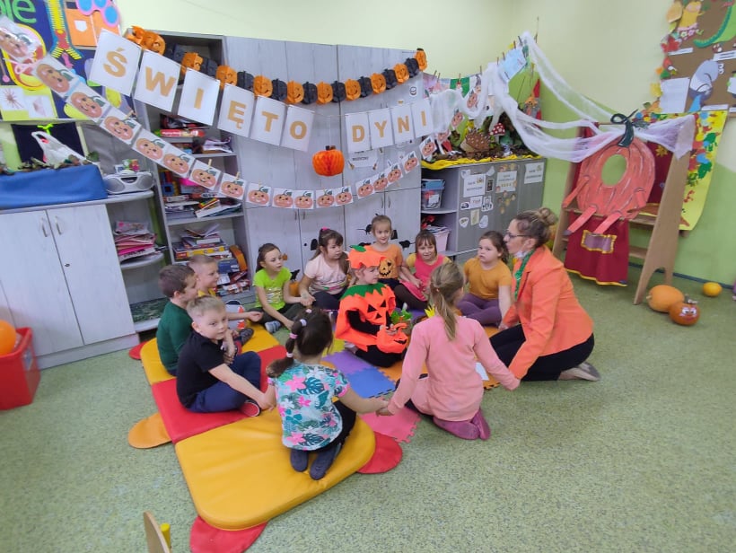 W dniu 9 listopada przedszkolaki Odkrywcy uroczyście obchodziły „Święto dyni”. Z tej okazji dzieci mogły wziąć udział w zajęciach poznawczych i logopedycznych. W ramach święta wysłuchały dyniowej piosenki, opowiadania o dyni, aktywnie ćwiczyły buzie i języki, słuch fonemowy i tor oddechowy. Wykazały się także umiejętnościami w liczeniu dyń, orientacji przestrzennej oraz zaspokoiły potrzebę ruchu podczas zabaw i tańca z dynią. Na zakończenie zajęć nakrywały do stołu, zapoznały się z przepisem na zupę dyniową w sposób polisensoryczny. Przedszkolaki zrobiły sobie również pamiątkowe zdjęcia w fotobudce z dynią. Zajęcia przebiegały w radosnej atmosferze przy pięknej dekoracji jesienno-dyniowej, a uśmiechnięte buzie dzieci świadczą o sukcesie zajęć. Inicjatorkami zajęć były: Monika Niemczyk i Monika Bębniarz.