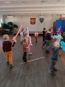 Wszyscy świetnie się bawili, uśmiechy nie schodziły z twarzy. Na zakończenie każde z przedszkolaków otrzymało balonik w kształcie miecza. Dziękujemy za wspaniałą współpracę pani dyrektor GOKiS Wioletcie Drozdowskiej i pani Magdalenie Biś.