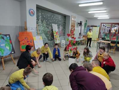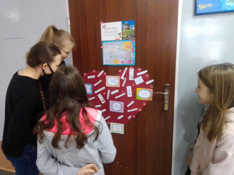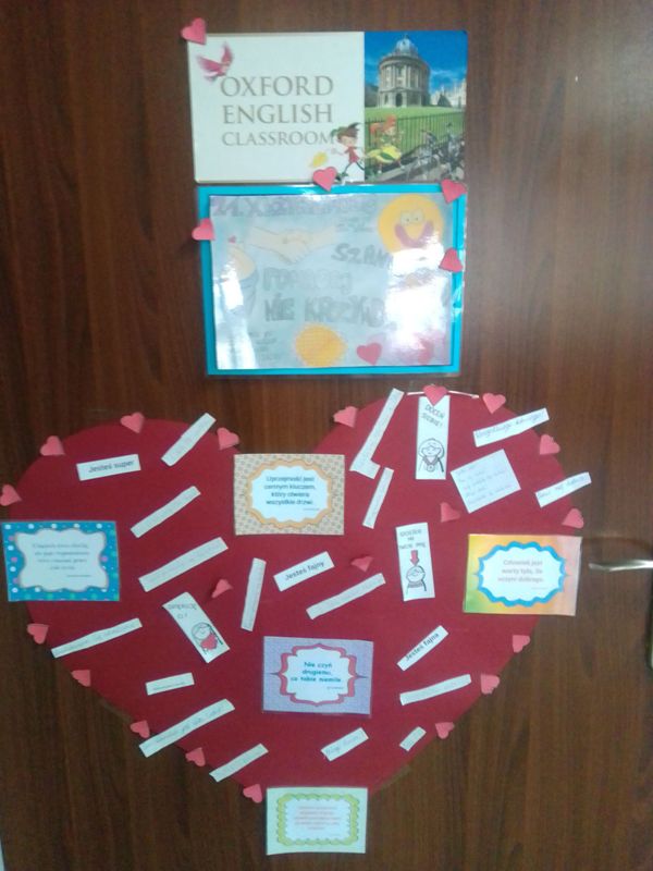 Na godzinie z wychowawczej, każda klasa przygotowała hasła związane z życzliwością, które zostały przyklejone do kolorowego serca.
