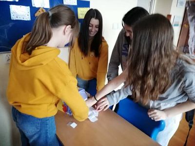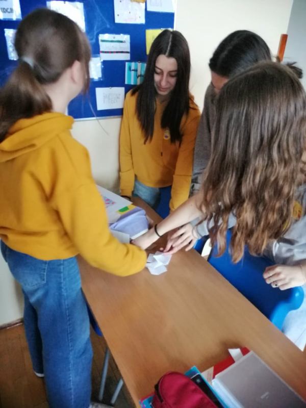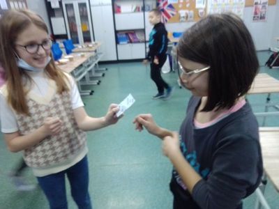 Pierwsze działanie, „Zerwij, wykonaj i podaj dalej”. Uczniowie w swojej klasie zrywali kartkę z wyzwaniem, wykonali zadanie i podawali wyzwanie wybranej przez siebie osobie.