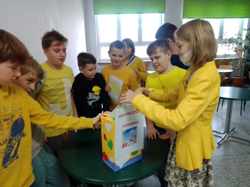 Na ten dzień uczniowie przygotowali dla osoby lub osób kartkę/ kartki życzeń i pozdrowień, którą/ które włożyli do pudełka z życzeniami.
