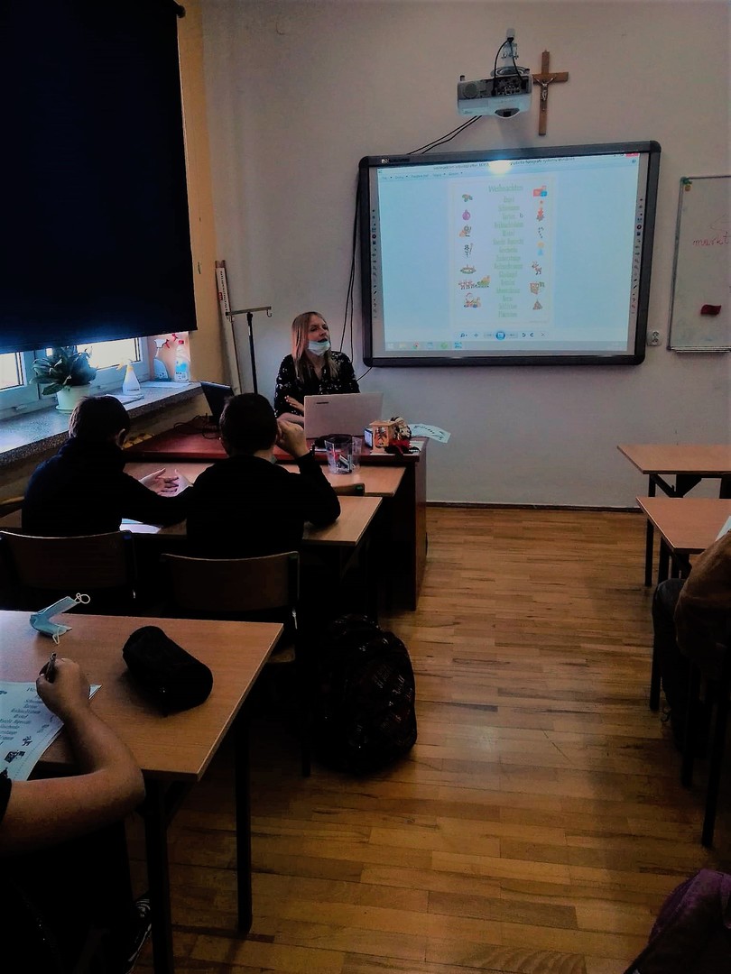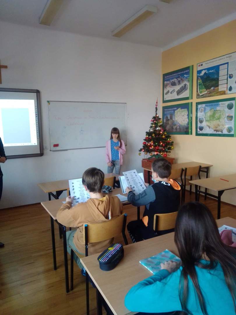 Uczniowie zostali zapoznani ze słownictwem i zwrotami związanymi ze świętami Bożego Narodzenia oraz zwyczajami, które towarzyszą temu najmilszemu okresowi w roku. Wysłuchali oraz obejrzeli krótkie filmiki poświęcone tematyce świątecznej, dyskutowali i wymieniali swoje spostrzeżenia dotyczące podobieństw i różnic między tradycjami bożonarodzeniowymi w Niemczech, Anglii i w Polsce.