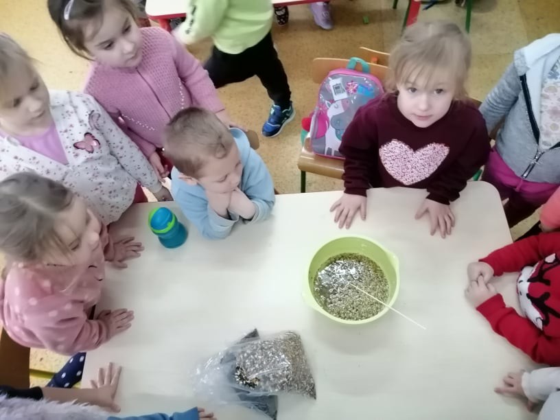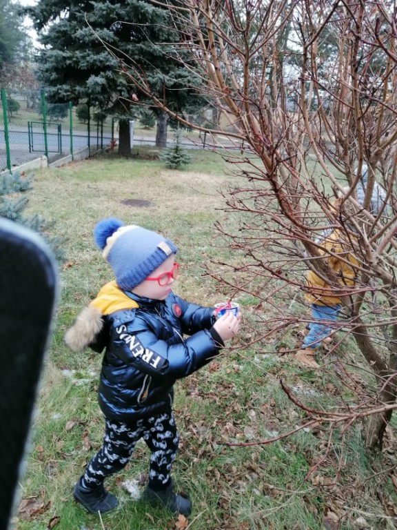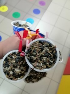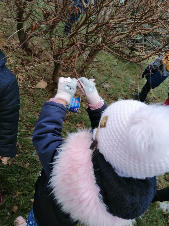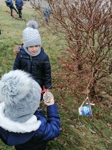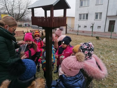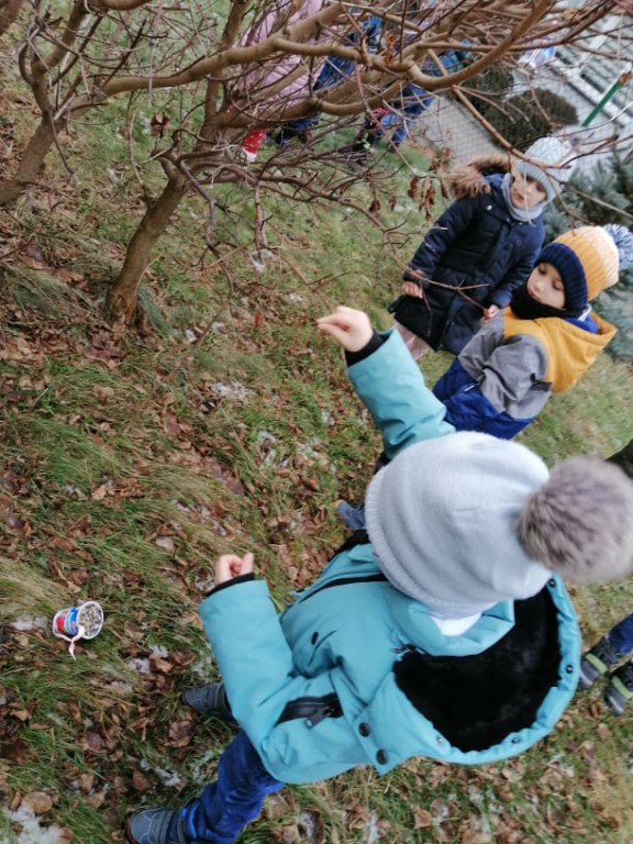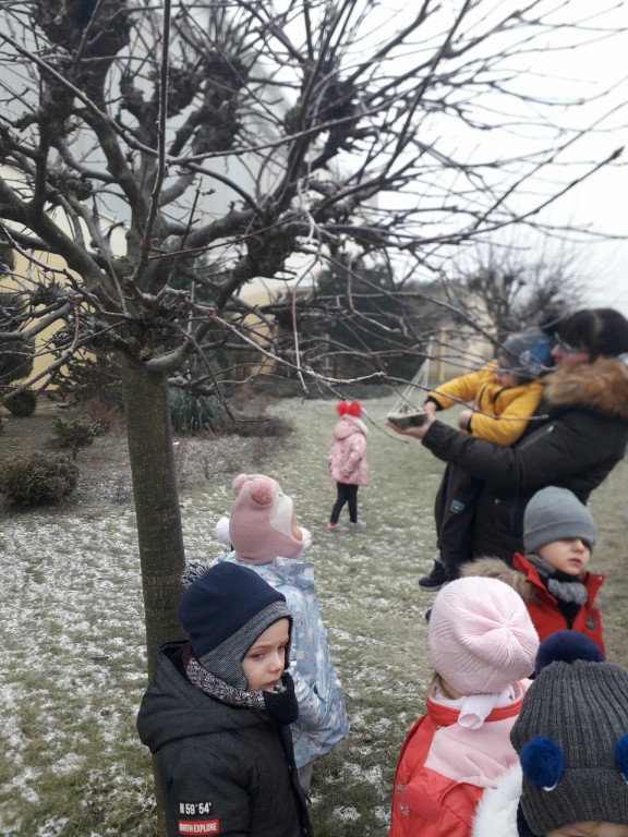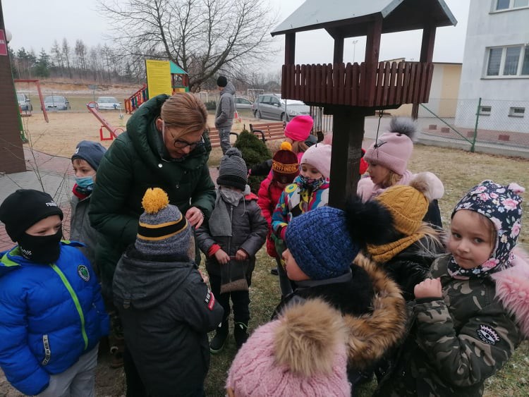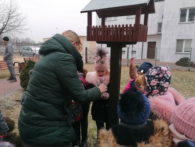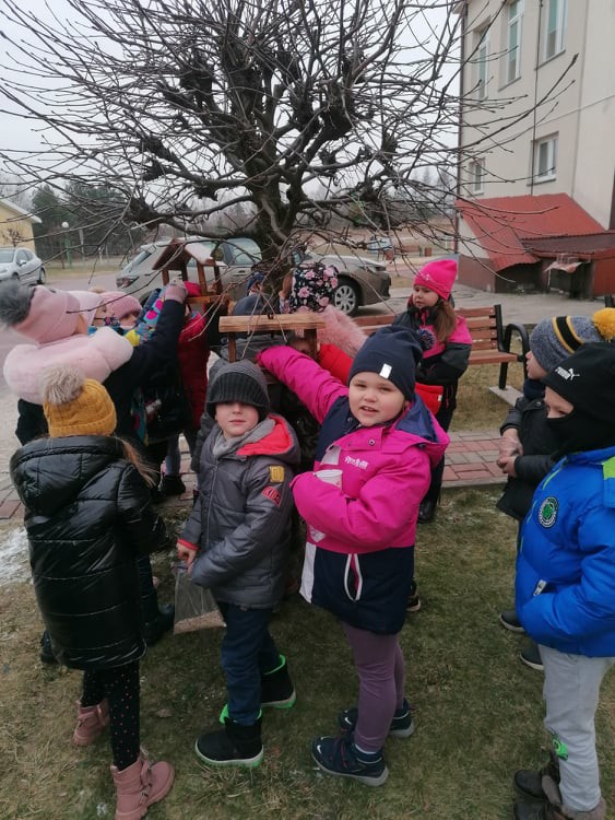 W ramach corocznej akcji dokarmiania ptaków Wychowawcy oddziałów przedszkolnych przeprowadzili tygodniowe bloki tematyczne zajęć, których celem było poznanie przez dzieci zasad dokarmiania zwierząt zimą oraz rozwijanie postawy proekologicznej. Dzieci przyniosły dla ptaków nasiona, ziarna zbóż, słoninę. Podczas zajęć powstały kule tłuszczowe, które zawieszone zostały w otoczeniu szkoły. Umieszczono kolejne karmniki wykonane przez rodziców przedszkolaków.