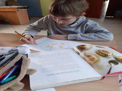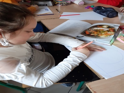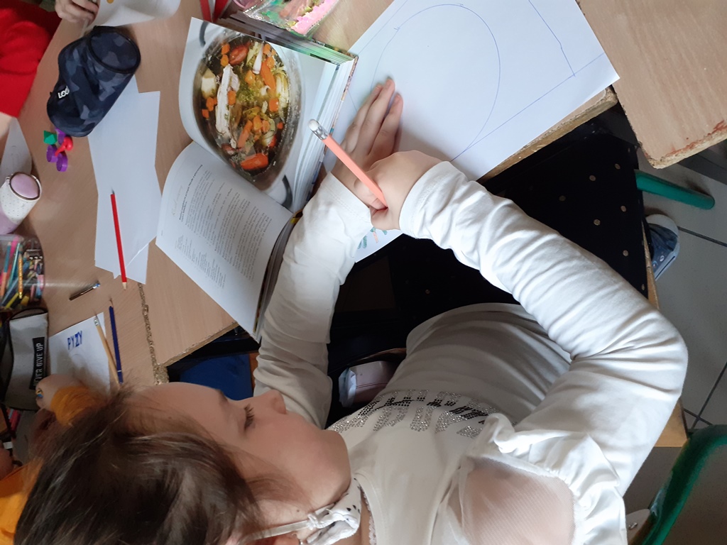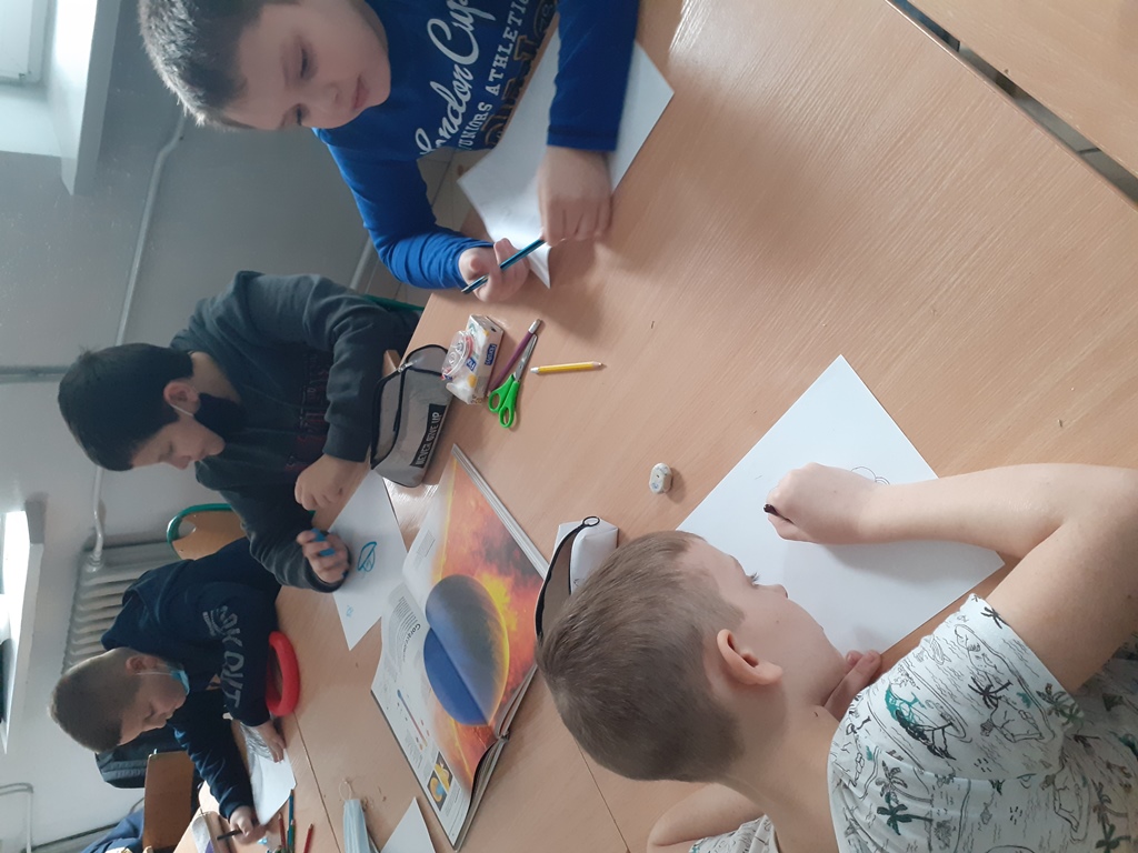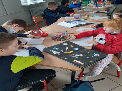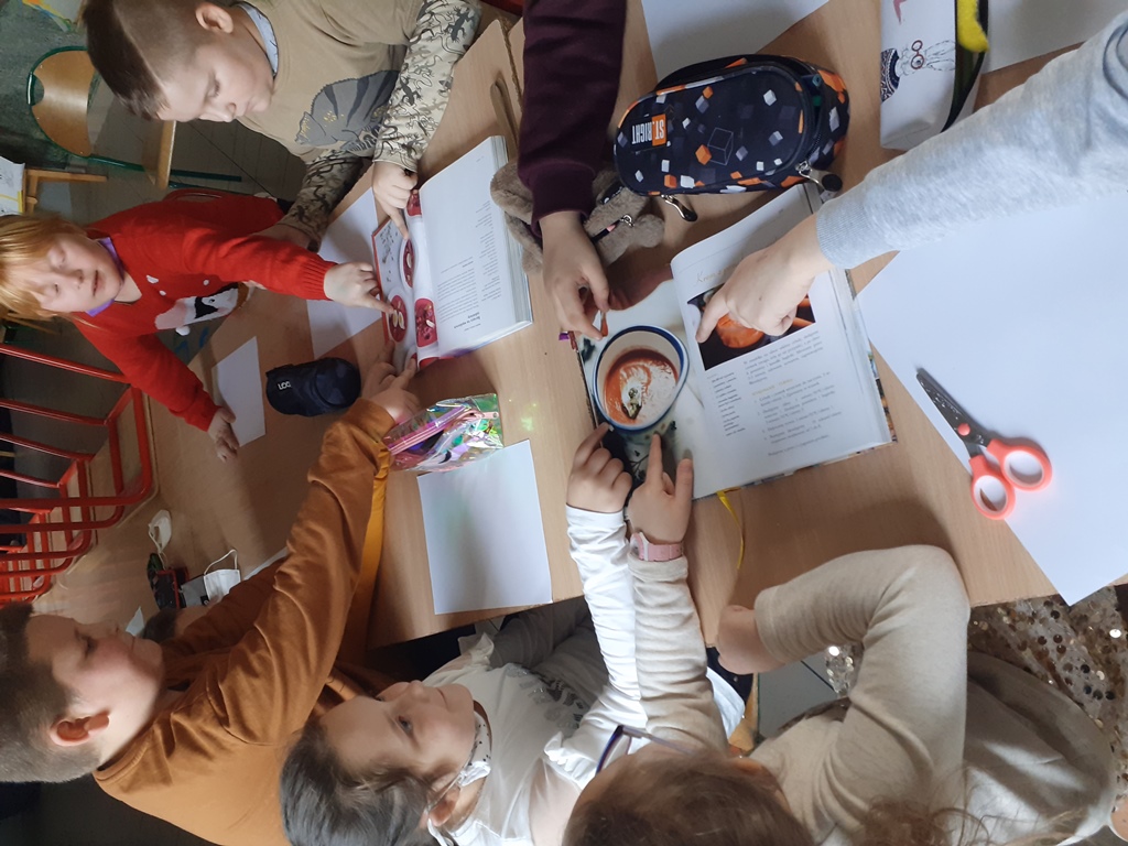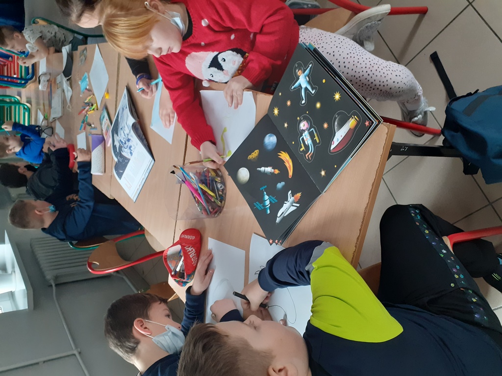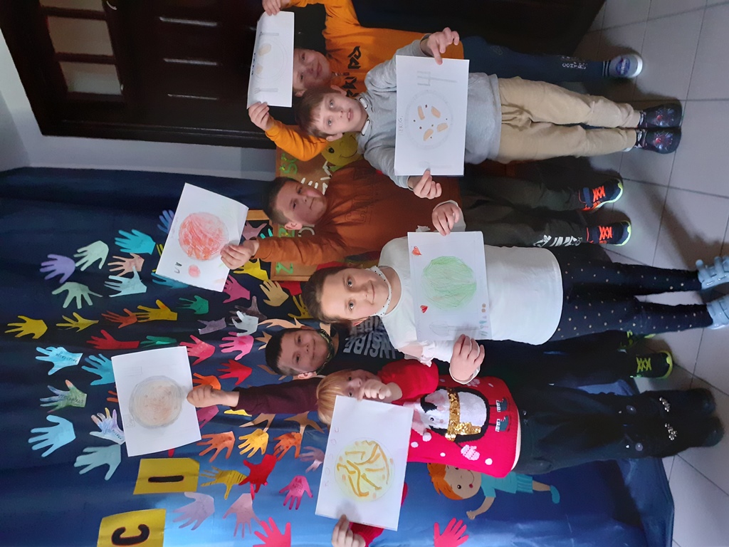W ciągu ostatnich tygodni uczniowie w ramach zajęć świetlicowych aktywnie wykonywali kolejne zadania wynikające z projektu. „Świetliczaki”, podczas szukania odpowiedzi na pytanie - „Ile oczu ma rosół?” - zapoznały się z tradycjami kuchni polskiej, oglądały książki kucharskie oraz filmy o tematyce kulinarnej. Na koniec wykonały grupową książkę kucharską ze swoimi ulubionymi potrawami. Kolejne zadanie dotyczyło tajemniczego kosmosu. Uczniowie poznali nazwy planet w Układzie Słonecznym, wspólnie śpiewali piosenki o kosmosie oraz wykonali piękne prace plastyczne pt. „Moja przygoda w kosmosie”.