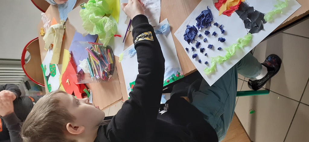 Na zajęciach świetlicowych zrealizowaliśmy również zadanie „Cztery pory roku, a może więcej...?”. Omówiliśmy charakterystyczne zjawiska pogodowe dla danej pory roku oraz utworzyliśmy „Świetlicowy kalendarz” na 2022 rok. Aktywne „Świetliczaki” wykonały również prace plastyczne w formie collage, na których przedstawiły swoją ulubioną porę roku. Udział w projekcie dostarcza nam wiele radości i z niecierpliwością czekamy na kolejne emocjonujące przygody wynikające z realizacji następnych zadań z projektu.