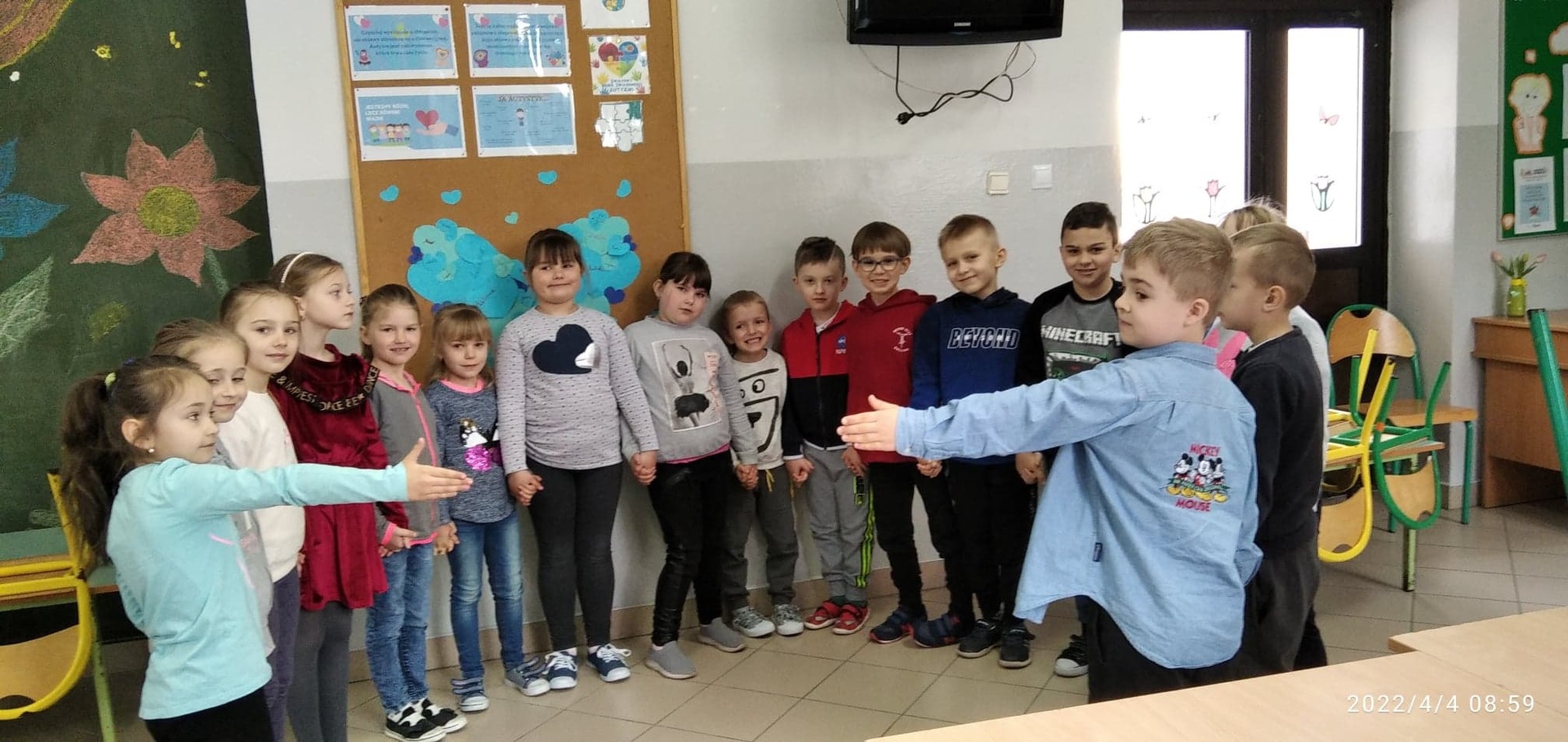 2 kwietnia to Światowy Dzień Świadomości Autyzmu, w naszej szkole obchodziliśmy to święto 4 kwietnia. W ramach solidaryzowania się z osobami ze spektrum autyzmu cała społeczność szkolna włączyła się w akcję „Wirtualny uścisk”, której pomysłodawcą jest Stowarzyszenie „Karuzela”. Dzieci ustawiły się do zdjęć w kształcie niepołączonego koła z luką przeznaczoną dla osób ze spektrum autyzmu. Ta wolna przestrzeń w kole symbolizuje poczucie wspólnoty, które pozostanie z nami przez cały rok. Starsi uczniowie i oddziały przedszkolne przyszli do szkoły w niebieskich strojach. Barwa ta oznacza nieskończoność horyzontu, postrzegana jako najczystsza i najzimniejsza, a zarazem najbardziej odrealniona z wszystkich barw staje się symbolem autyzmu. Na świetlicy szkolnej powstała gazetka tematyczna, a uczniowie mieli okazję obejrzeć film związany z tematyką autyzmu. Dziękujemy wszystkim wychowawcom i uczniom za udział w niebieskiej zabawie i przyjęciu wyzwania #wirtualnyłańcuchdlaautyzmu.