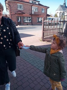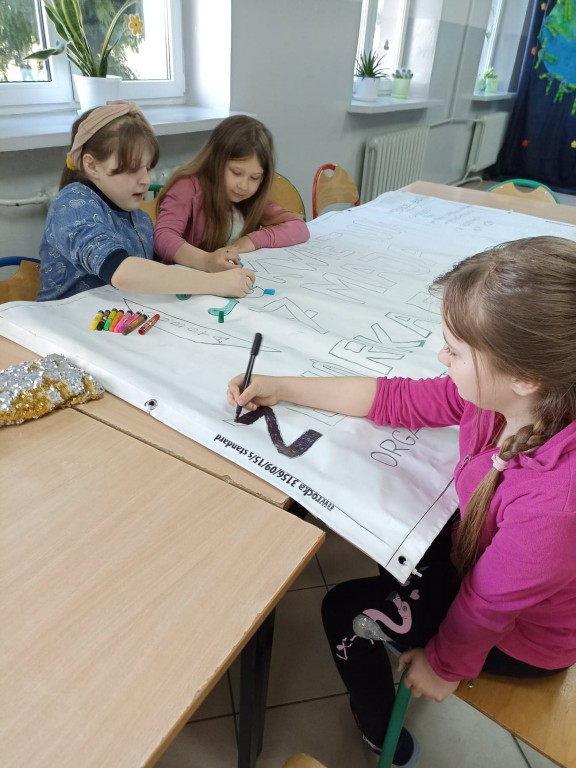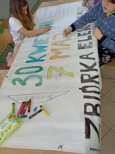 Z udziałem uczennic klasy 2 został wykonany transparent z terminem i miejscem zbiórki, z którym dzieci wyruszyły na plac rynku w Wielgomłynach. Mamy nadzieję, że na nasz apel odpowiedzą mieszkańcy gminy Wielgomłyny i w sobotę 30 kwietnia oraz 7 maja przeprowadzimy naszą zbiórkę z oczekiwanym efektem. W naszych działaniach będzie nas wspierać, tak jak i w tamtym roku OSP KSRG Wielgomłyny, której już bardzo dziękujemy. Przypominamy, że miejscem zbiórki są garaże za Gminnym Ośrodkiem Zdrowia w Wielgomłynach.