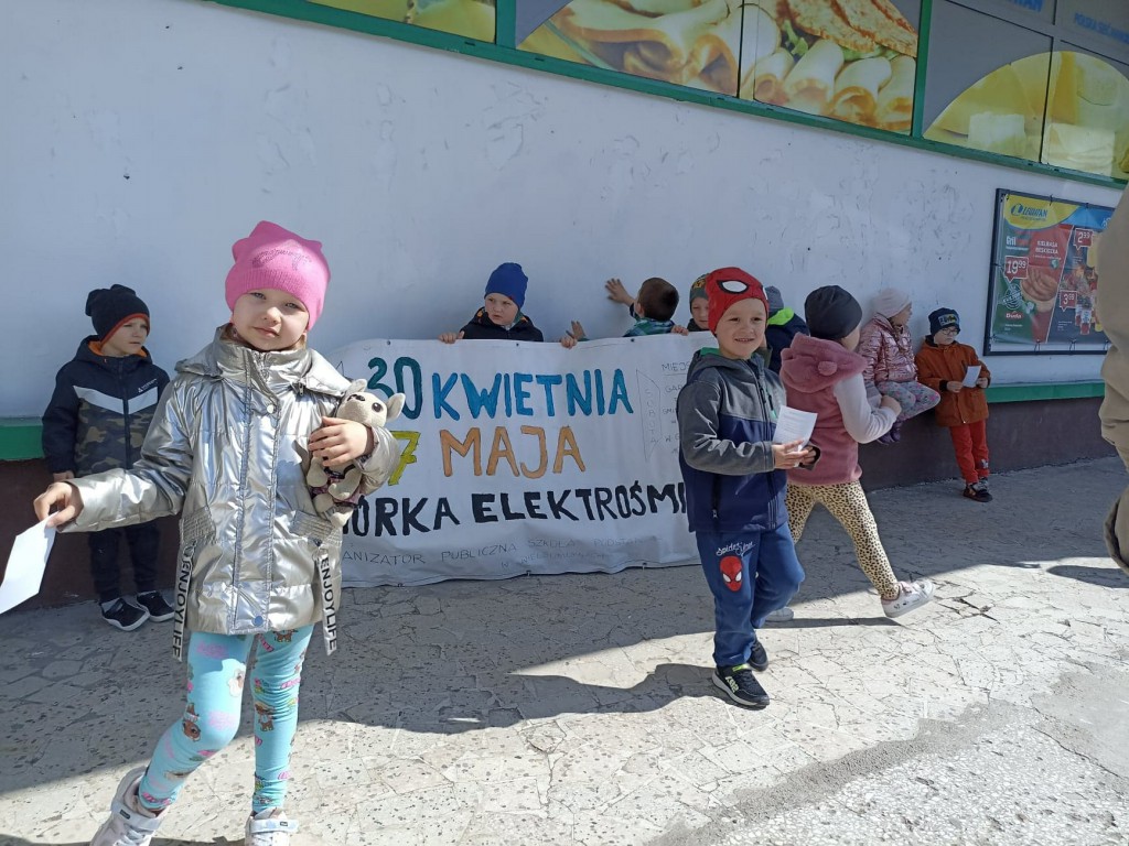 Przygotowania do zbiórki trwają i związane z tym działania mające na celu poinformowanie jak najszersze grono osób o organizowanej zbiórce elektrośmieci w dniu 30 kwietnia i 7 maja. W akcję informacyjną o zbiórce włączyły się przedszkolaki z grupy 4-latków i 5-latków rozdając ulotki, rozwieszając plakaty informacyjne, skandując hasło „Dzieci zbierają elektrośmieci”.