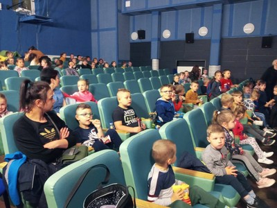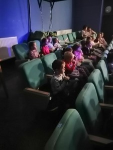 Dzieci z grupy 3, 4 oraz 5-latków wybrały się na wycieczkę do MDK w Przedborzu na przedstawienie teatralne - „Szkatułka Krasnala Chichotka”. Pomysłowa, scenografia, barwne kostiumy, efekty świetlne, muzyka, a przede wszystkim świetna gra aktorów spowodowały, że przedszkolaki z zaciekawieniem obejrzały widowisko. Podczas przedstawienia dzieci towarzyszyły krasnalowi Chichotkowi w jego podróży po nowe doświadczenia. Ostrzegały go przed niebezpieczeństwem, doradzały, śpiewały.