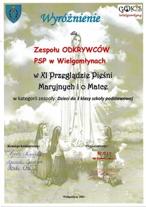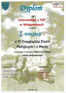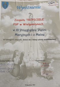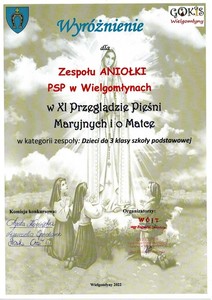 W przeglądzie wzięli udział także przedszkolaki z oddziałów przedszkolnych oraz uczniowie z naszej szkoły. Wszyscy zaśpiewali ze szczerego serca, najlepiej jak umieli, tak więc poziom uczestników występujących na scenie był bardzo wysoki. Zgromadzona publiczność mogła wysłuchać wielu znanych, jak i nieco zapomnianych pieśni ku czci Matki Bożej.