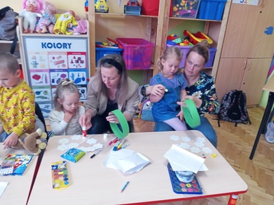 30 maja trzylatki spotkały się z okazji Dnia Matki ze swoimi ukochanymi mamusiami na kreatywnych warsztatach plastyczno-muzycznych „List do Mamy”. Dzieci wspólnie z mamami doskonale bawiły się podczas wykonywania prac plastycznych oraz zabaw muzyczno-ruchowych. Bajkusie zaśpiewały dla mam piosenkę i wręczyły wykonane przez siebie upominki.