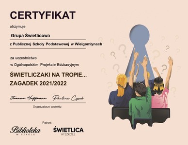 W drugim półroczu roku szkolnego 2021/2022 uczniowie w ramach zajęć świetlicowych w naszej szkole wykonywali kolejne zadania wynikające z Ogólnopolskiego Projektu Edukacyjnego ,,Świetliczaki na tropie... zagadek”. Celem projektu było m.in. uwrażliwienie dzieci na piękno otaczającego świata oraz rozwijanie zdolności manualnych.