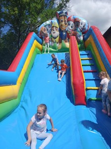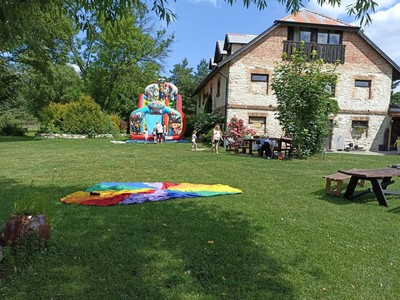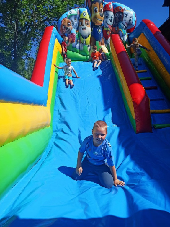 W gospodarstwie dużo radości sprawiła dzieciom możliwość zabawy na zjeżdżalni dmuchanej. W cieniu drzew można było odpocząć i zjeść różne smakowitości. Piękna pogoda była dodatkowym atutem tego udanego wyjazdu. Dziękujemy rodzicom za pomoc podczas wycieczki.