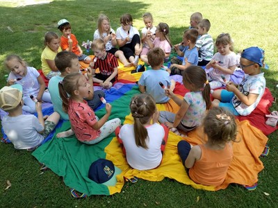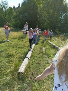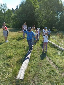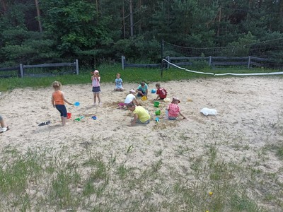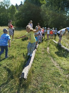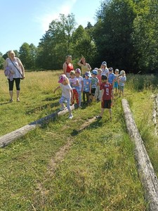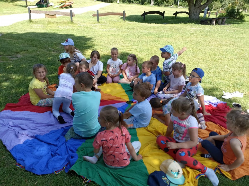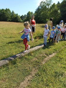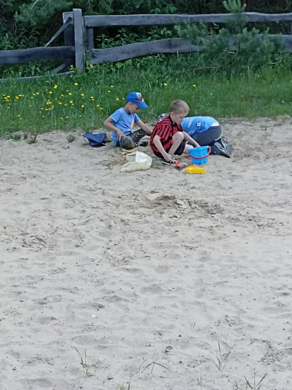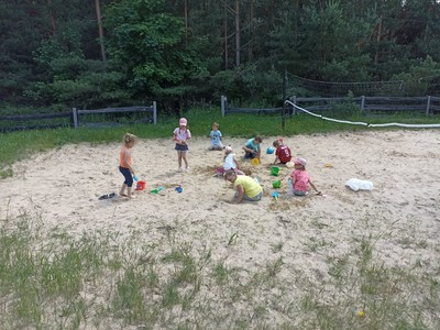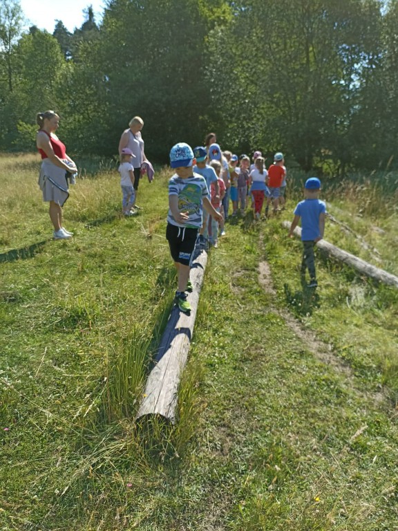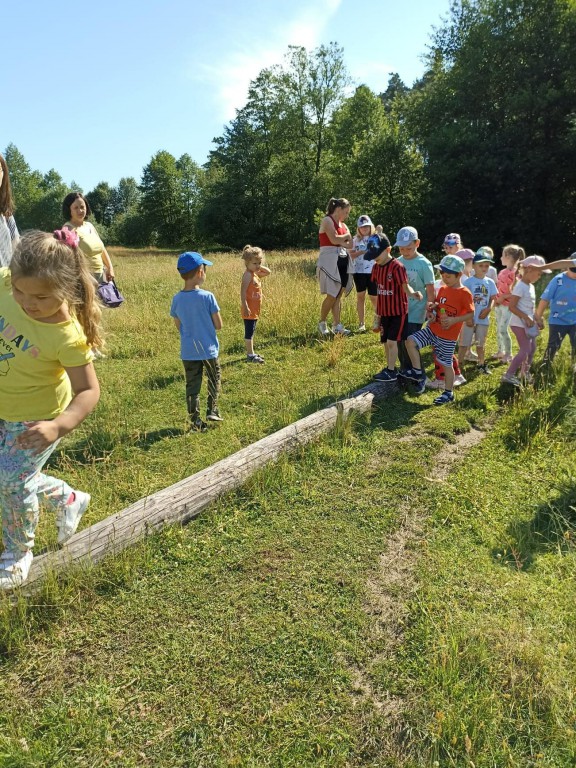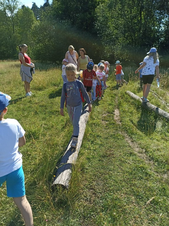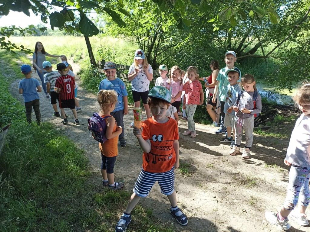 Na zakończenie roku szkolnego grupa 5-latków wybrała sie na wycieczkę do Gospodarstwa Agroturystycznego „Nad Plilicą” w Krzętowie. Został tam zorganizowany piknik dla dzieci. Przedszkolaki spędziły bardzo miło czas na aktywnej zabawie. Na początku zwiedziły gospodarstwo, a następnie wraz z opiekunami były na spacerze ścieżka prowadzącą wzdłuż starego koryta rzeki Pilicy z pięknymi widokami stworzonymi przez naturę. Po drodze można było obejrzeć różne gatunki roślin oraz pobawić się np. przechodząc po zwalonym pniu drzewa.