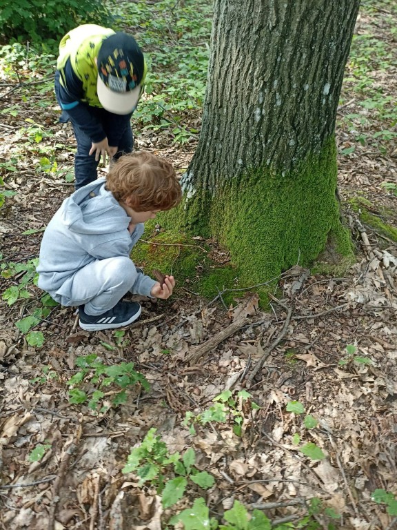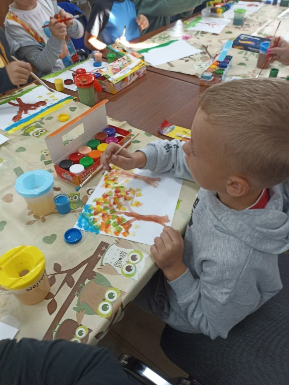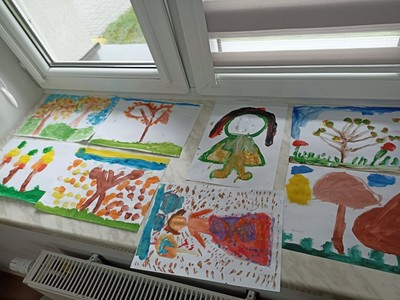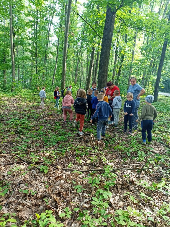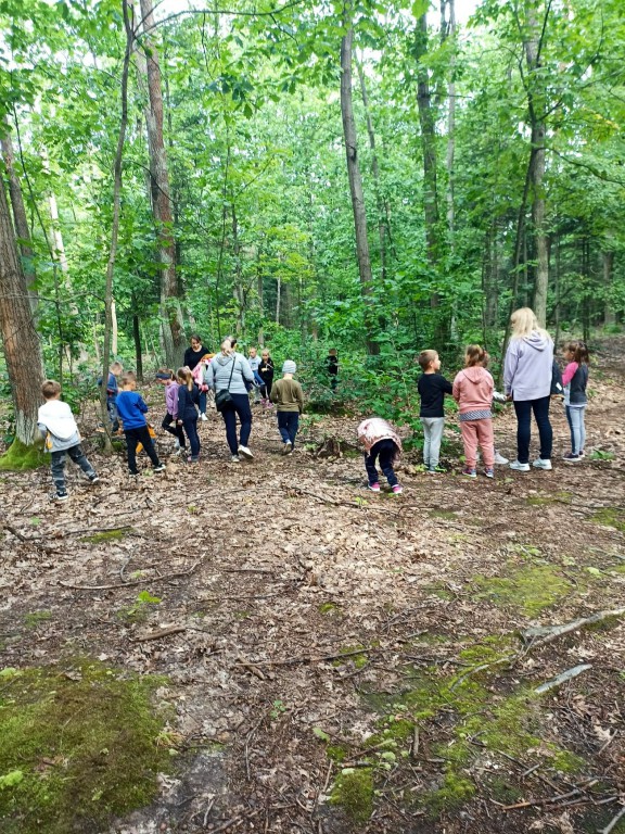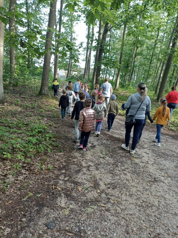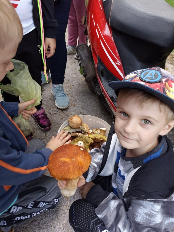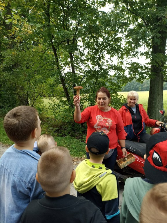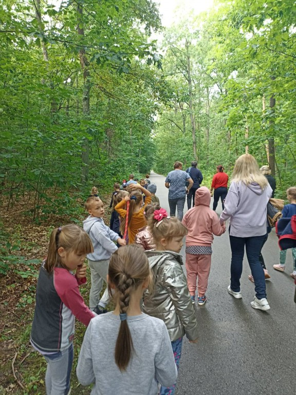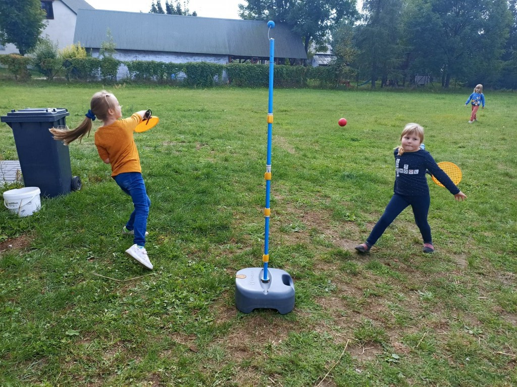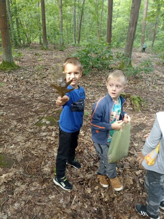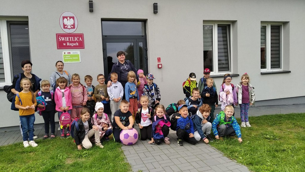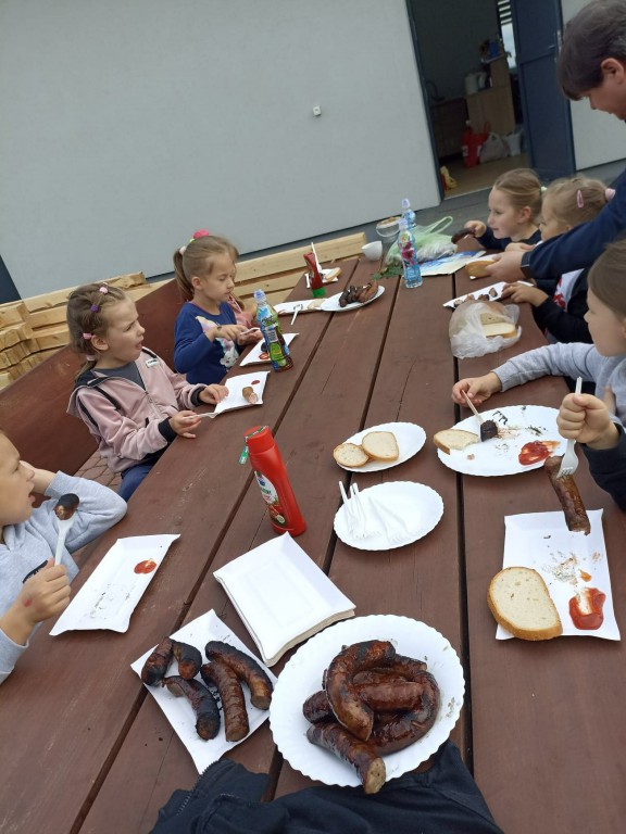 Nieuchronnie zbliża się koniec lata, lecz przedszkolaki nie smucą się z tego powodu. Wiedzą iż za chwilę powitają równie piękną porę roku jaką jest jesień. Może dlatego w dobrych humorach zerówki pożegnały lato podczas wycieczki do świetlicy wiejskiej w Rogach. Piękna pogoda umożliwiła realizację wszystkich zaplanowanych na ten dzień działań dla dzieci. Przy współpracy z rodzicami, KGW w Rogach przedszkolaki miały możliwość odszukać „Panią Jesień” w czytanym tekście opowiadania, w pracy plastycznej wykonanej farbami, na ścieżkach leśnych podczas spaceru. Mnóstwo oznak nadchodzącej jesieni zostało przez dzieci odnalezionych zwłaszcza podczas spaceru do lasu. To było nie lada wyzwanie, ale i ogromna frajda przedzierać się przez leśną gęstwinę w poszukiwaniu żołędzi, szyszek, a także grzybów. Na twarzach dzieci nie było widać jednak zmęczenia po takiej wędrówce. Wystarczyło im również siły na swobodną zabawę na świeżym powietrzu. Być może dlatego, iż przygotowanych zostało na tą okoliczność mnóstwo pyszności.