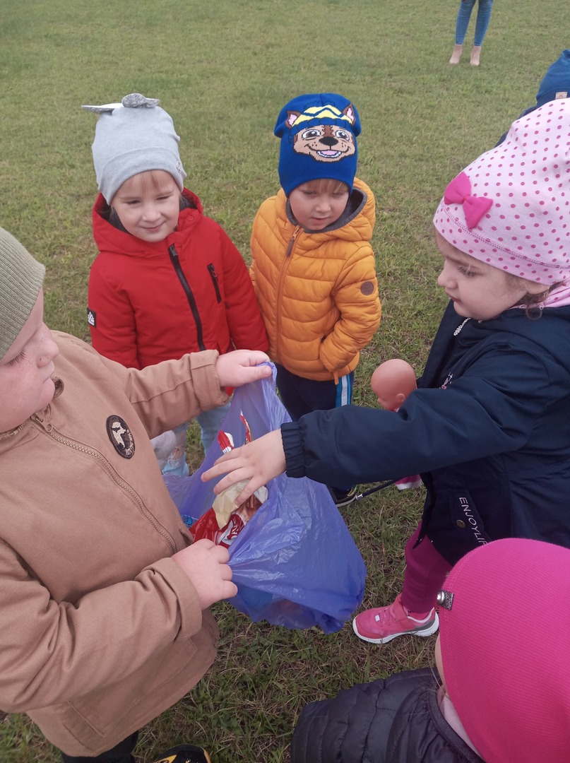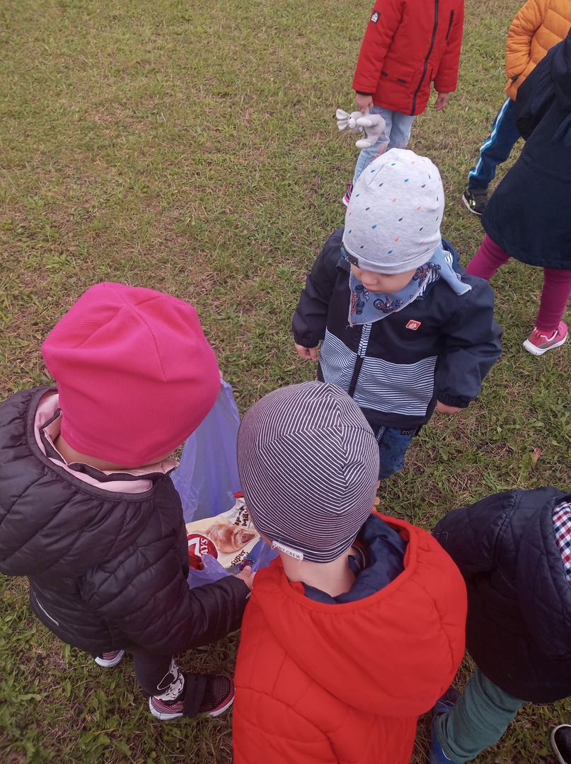 W dniu 21 września 2022 r. grupa 3-latków dołączyła do ogólnopolskiej akcji edukacyjnej SPRZATANIE ŚWIATA. Przed wyruszeniem w teren dzieci poznały podział odpadów na kategorie: papier, plastik oraz szkło. Dowiedziały się także, że bardzo ważna jest dbałość o środowisko, w którym żyjemy i że każdy z nas może pomóc – segregując odpady oraz sprzątając swoja okolicę.