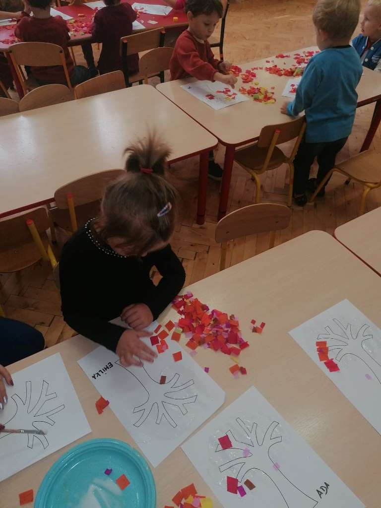 Święto to jest elementem programu edukacji ekologicznej. Tego dnia w naszej grupie odbywały się zajęcia związane z tematyką drzew, dzieci poznawały budowę drzewa, jego znaczenie dla człowieka, zwierząt i przyrody. W ogrodzie szkolnym przedszkolaki bawiły się jesiennymi darami. Na koniec złożyły uroczystą przysięgę „Przedszkolaki będą dbać o wszystkie drzewa!”. Po spacerze dzieci wykonały piękną pracę plastyczną pt. „Zaczarowane drzewo”.