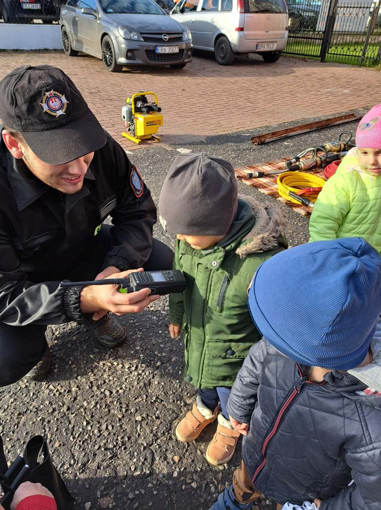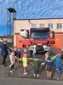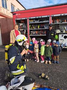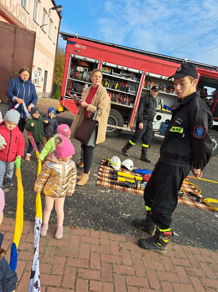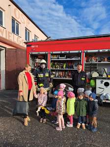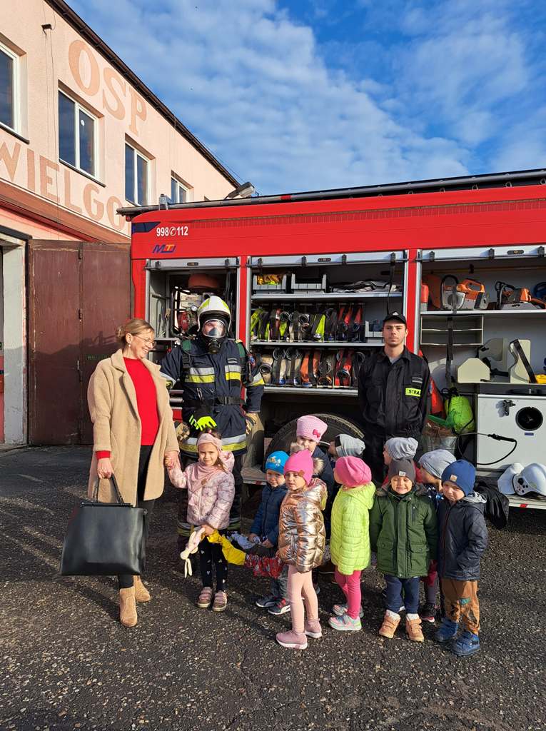 W dniu 28 października przedszkolaki odwiedziły OSP w Wielgomłynach. Dzieci zostały serdecznie ugoszczone przez strażaków, którzy zademonstrowali sprzęt strażacki wykorzystywany podczas różnych akcji ratunkowych. Dzieci miały okazję obejrzeć wóz strażacki, w którym mogły zrobić sobie zdjęcie oraz posłuchać sygnałów dźwiękowych, jakie wydaje. Ponadto słyszały również syrenę strażacką oraz oglądały strażaka w pełnym rynsztunku.