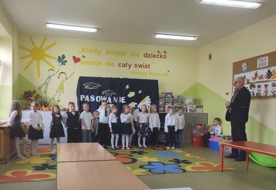 W dniu 9 listopada 2022 r. w 0B odbyło się ważne wydarzenie - pasowanie na Zerówkowicza. Uroczystość rozpoczęła się od powitania gości i przedstawienia krótkiej części artystycznej, w której dzieci zaprezentowały swoje umiejętności - dając tym samym dowód, jak dużo już potrafią. Pan Dyrektor Leszek Wróblewski skierował serdeczne słowa do najważniejszych w tym dniu bohaterów i symbolicznie lizakiem pasował każde dziecko na Zerówkowicza.