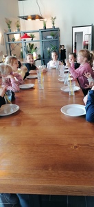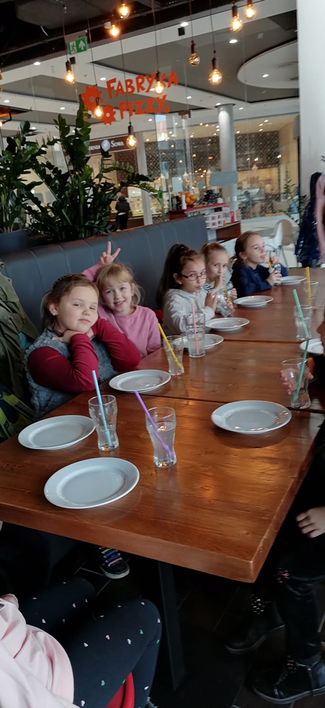 Uczniowie uczestniczyli w warsztatach, gdzie każde dziecko ozdobiło według własnego pomysłu bombki. Zwiedzanie fabryki dostarczyło wszystkim niezapomnianych wrażeń, o których przypominać będą błyszczące w świetle choinki bombki. Na zakończenie wycieczki poszły do kina Helios, na film o tematyce świątecznej, pt.: „Świąteczny cud”. Przed seansem, Pani wprowadziła dzieci w tematykę filmu. Porozmawiała z nimi o tradycjach i zwyczajach świątecznych. Wzbogaceni w wiedzę i doświadczenie, z własnoręcznie wykonanymi bombkami, czując już świąteczny klimat, wróciliśmy do Wielgomłyn.