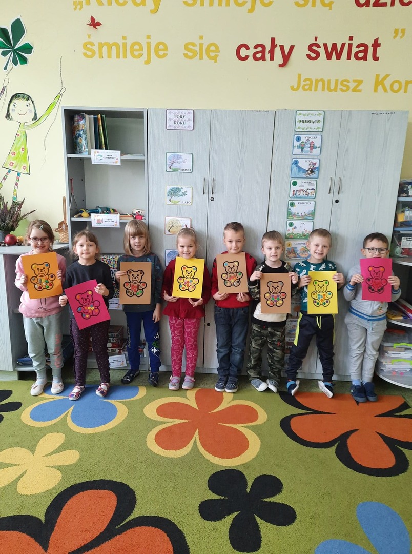 W dniu 25.11.2022 r. grupa "0" B obchodziła Dzień Pluszowego Misia. Kazde dziecko przyniosło ze sobą " malutkiego przyjaciela". Mozna było zobaczyć misie male, średnie, brązowe, rózowe, niebieskie itp. Wszystkie były śliczne i wyjątkowe. Dzieci poznały historię tego święta. Tańczyły i śpiewały piosenki o misiach, oglądały bajki,rozwiązywały zagadki i quizy. Dzieci wykonały prace plastyczne przedstawiające misie oraz zrobiły sobie pamiątkowe zdjęcie w fotobudce. Ten dzień był dla zerówkowiczów pełen usmiechu i fantastycznej zabawy. Szkoda tylko, że przez chorobę nie wszystkie dzieci mogły wziąć udział w zabawie.